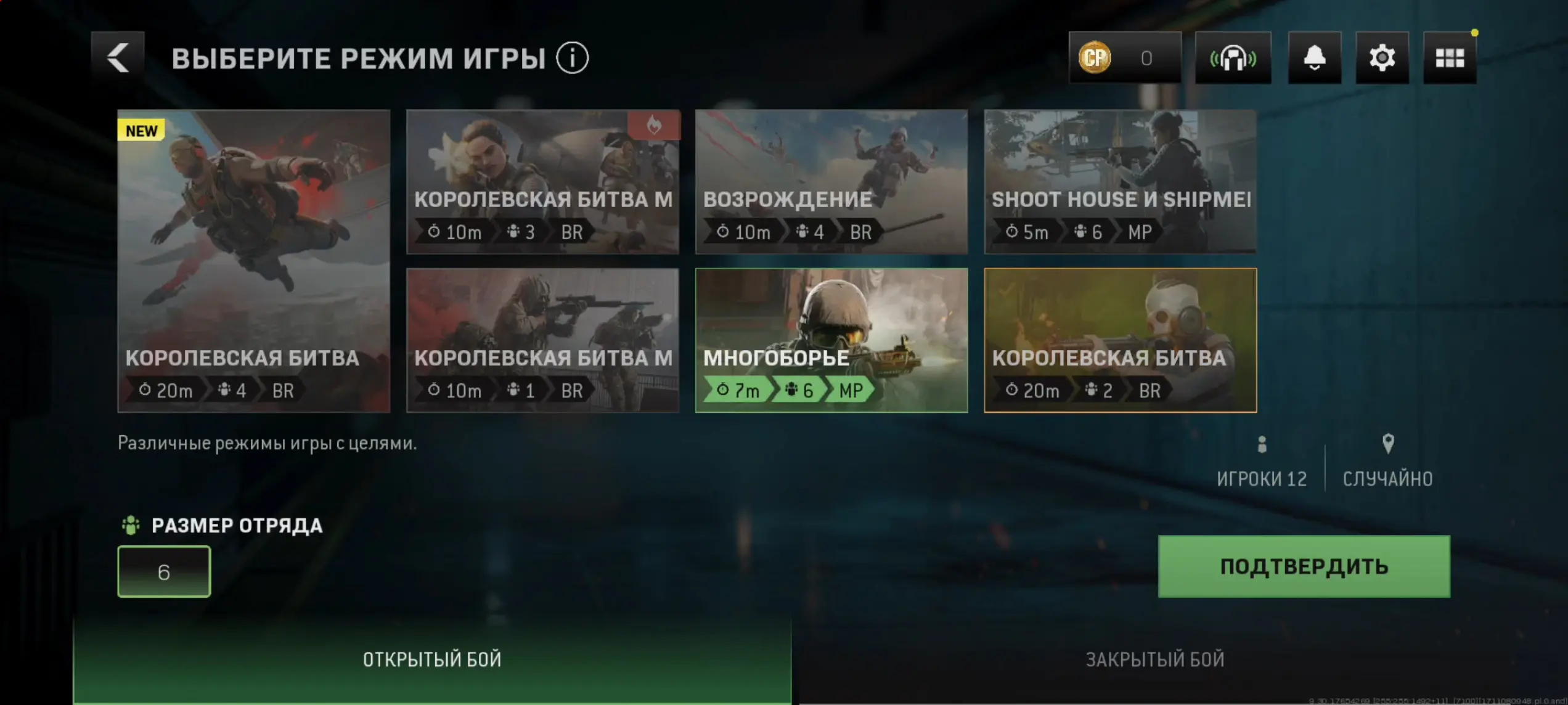 В Warzone Mobile есть бесплатный доступ к другим режимам из Call of Duty — от схватки команд до удержания точек и сбора жетонов. Чтобы переключиться на них, достаточно нажать на выбор режимов над кнопкой «Играть» и найти там «Многоборье». И тут игроки на ПК позавидуют: за такое им приходится платить, а на смартфонах 4 режима и 4 карты выдали бесплатно.