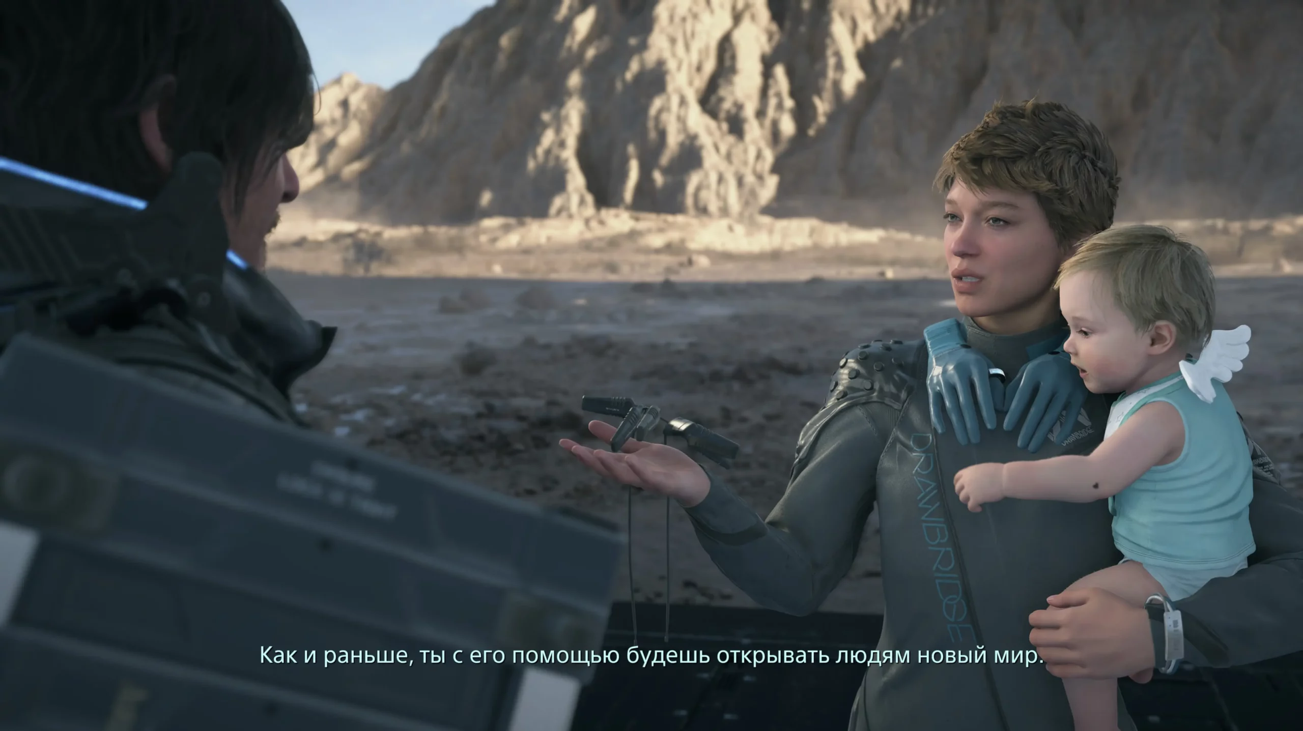 Несмотря на множество сложных названий и странностей, происходящее в игре довольно просто описать. Это история про мир, в котором произошла катастрофа, названная death stranding — в русской версии это перевели как «выход смерти». Из-за нее души умерших не могут перейти на «ту сторону» и пытаются вернуться к своим телам, что вызывает взрывы в реальном мире — потому что души состоят из антиматерии.