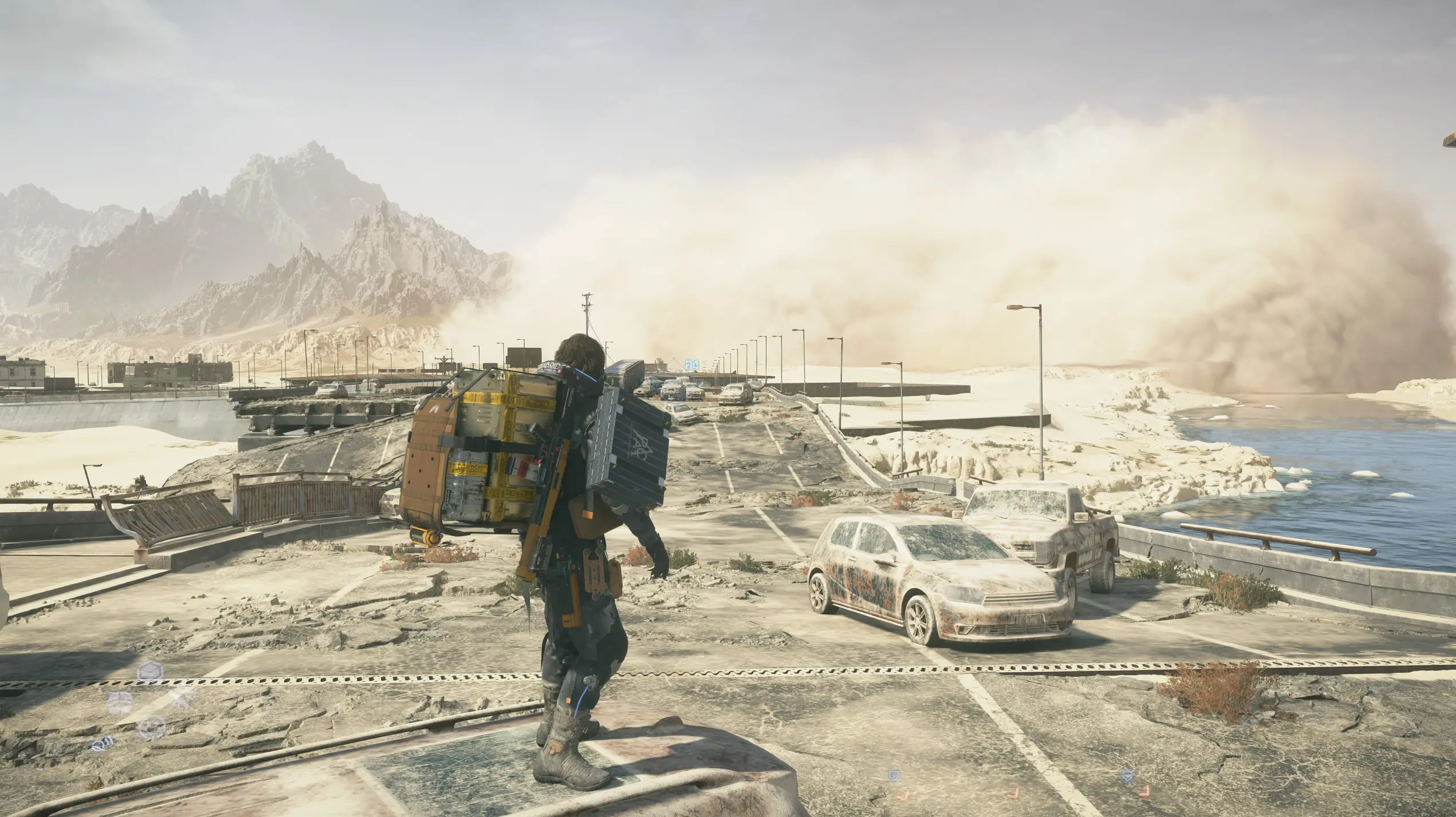 Зачастую помощь неоценима, особенно при доставках на своих двоих. Сэм может перетащить до 120 кг на спине, но на подмогу приходят экзоскелеты, увеличивающие грузоподъемность в несколько раз. Впрочем, от большинства напастей вроде рек, гор, глубокого снега и других естественных препятствий они не спасают — механика ходьбы такая же комплексная, нужно следить за смещением и вовремя корректировать движение героя.