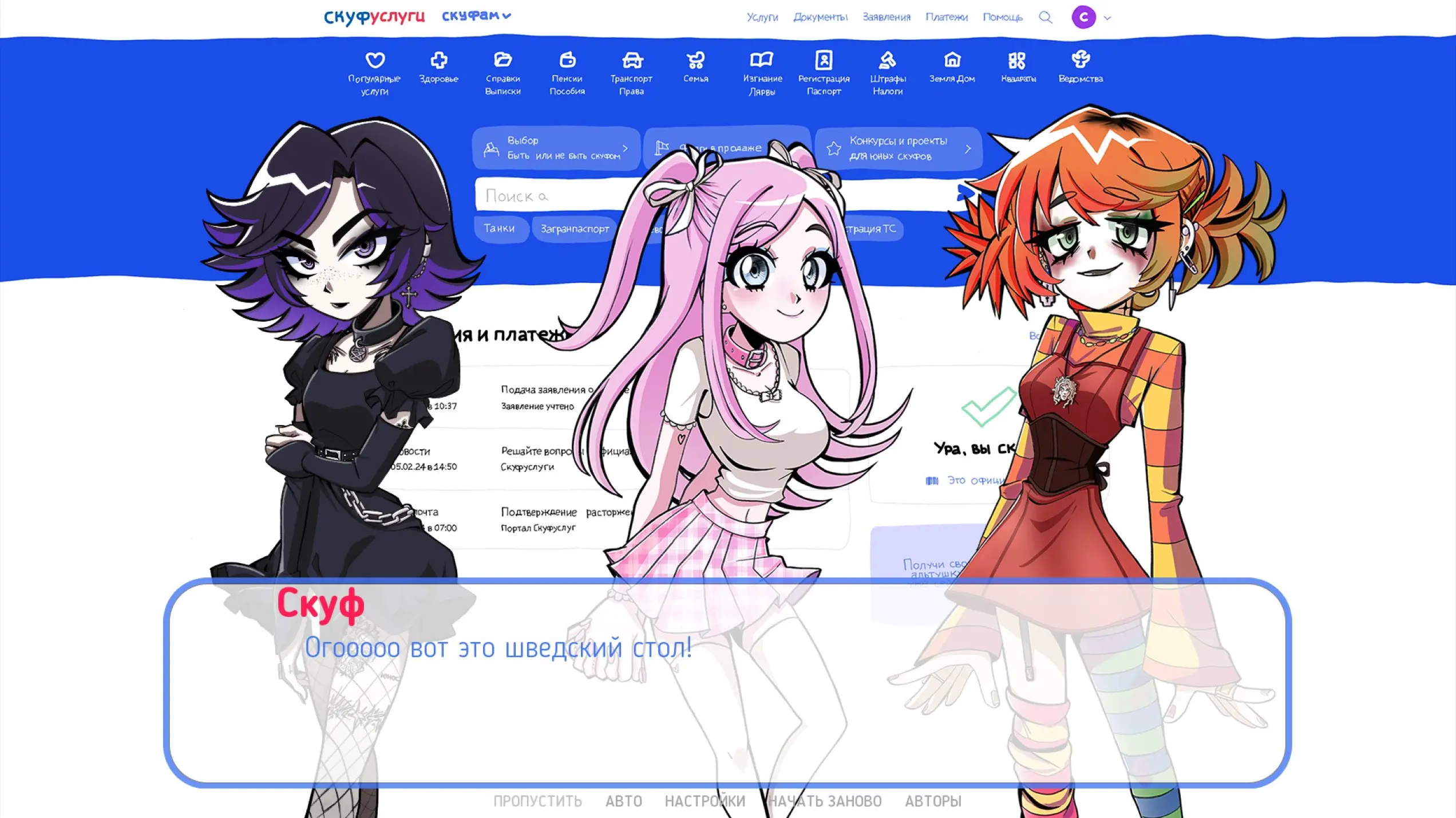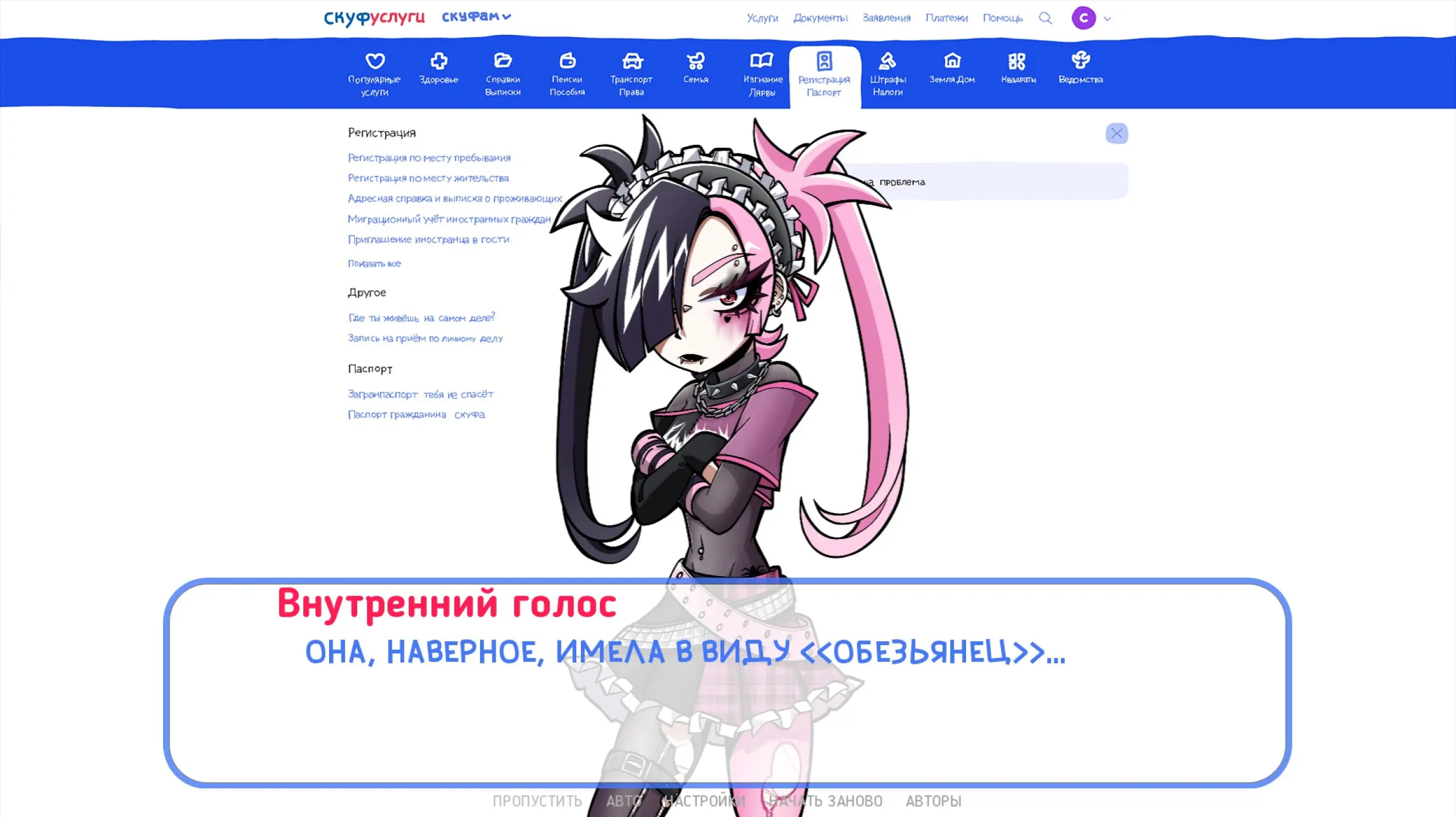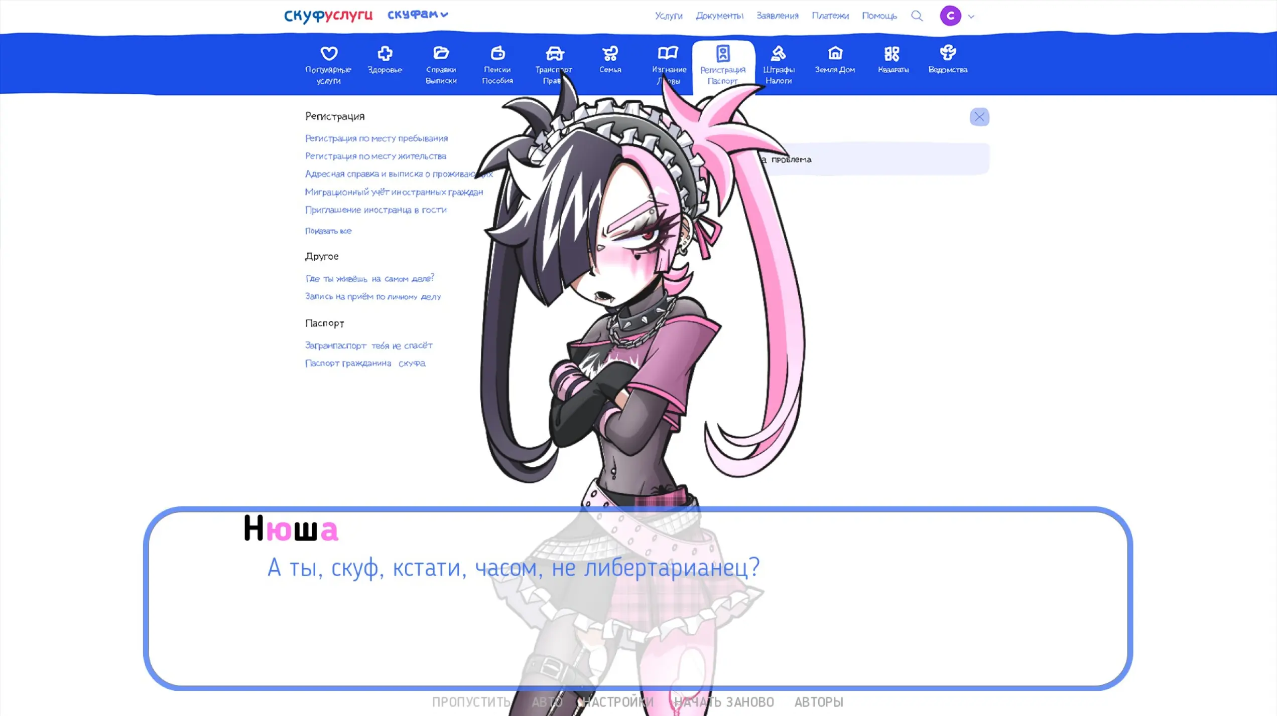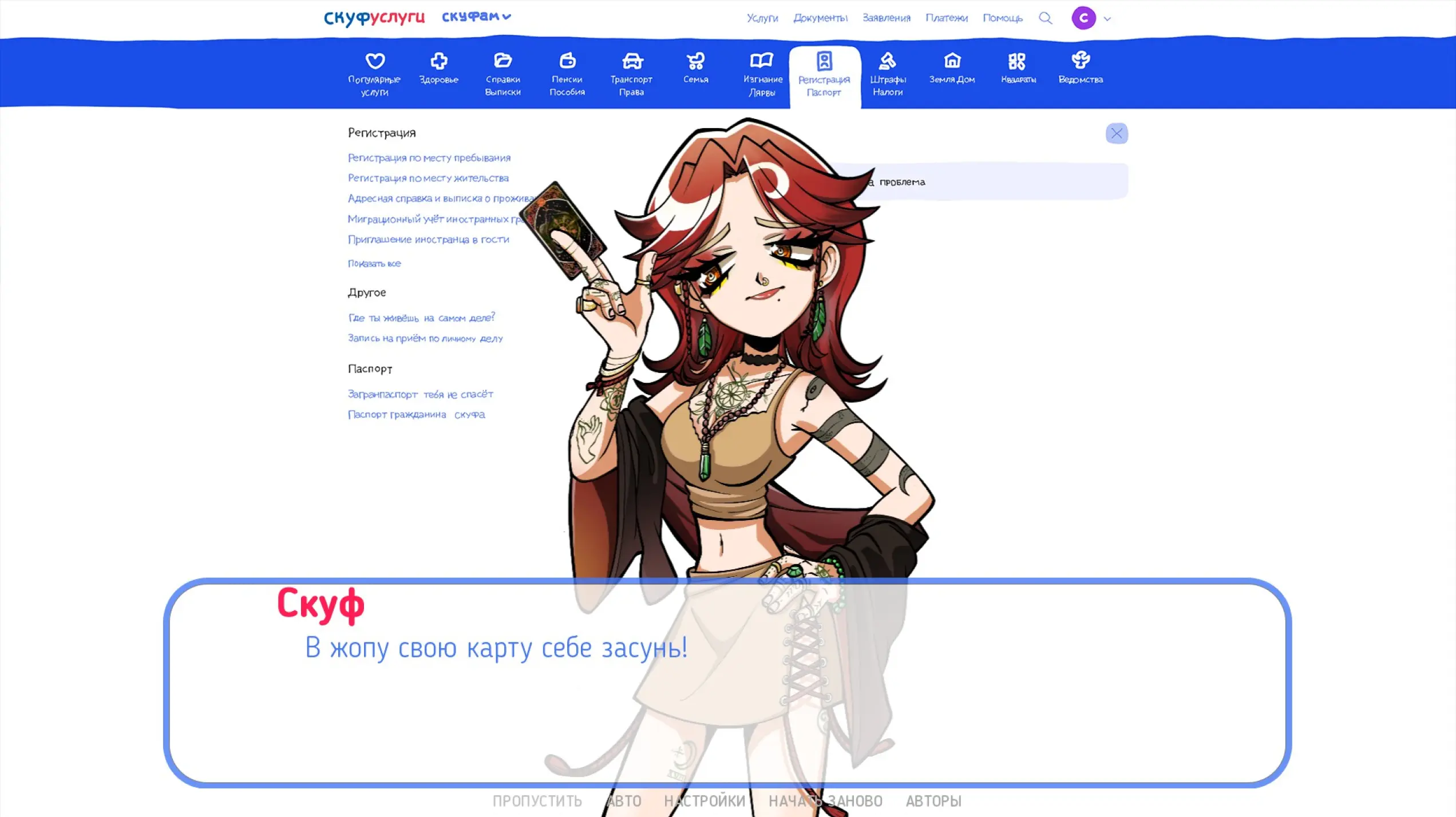 В игре вам требуется выбрать альтушку, пройти регистрацию и оформление документов, чтобы вскоре девушка смогла прибыть по указанному адресу к своему Скуфу. Но вот спойлер: ни одна неформалка не приедет. Этот сервис был придуман, чтобы граждане публиковали свои личные данные, которыми воспользуются военкомат или мошенники.