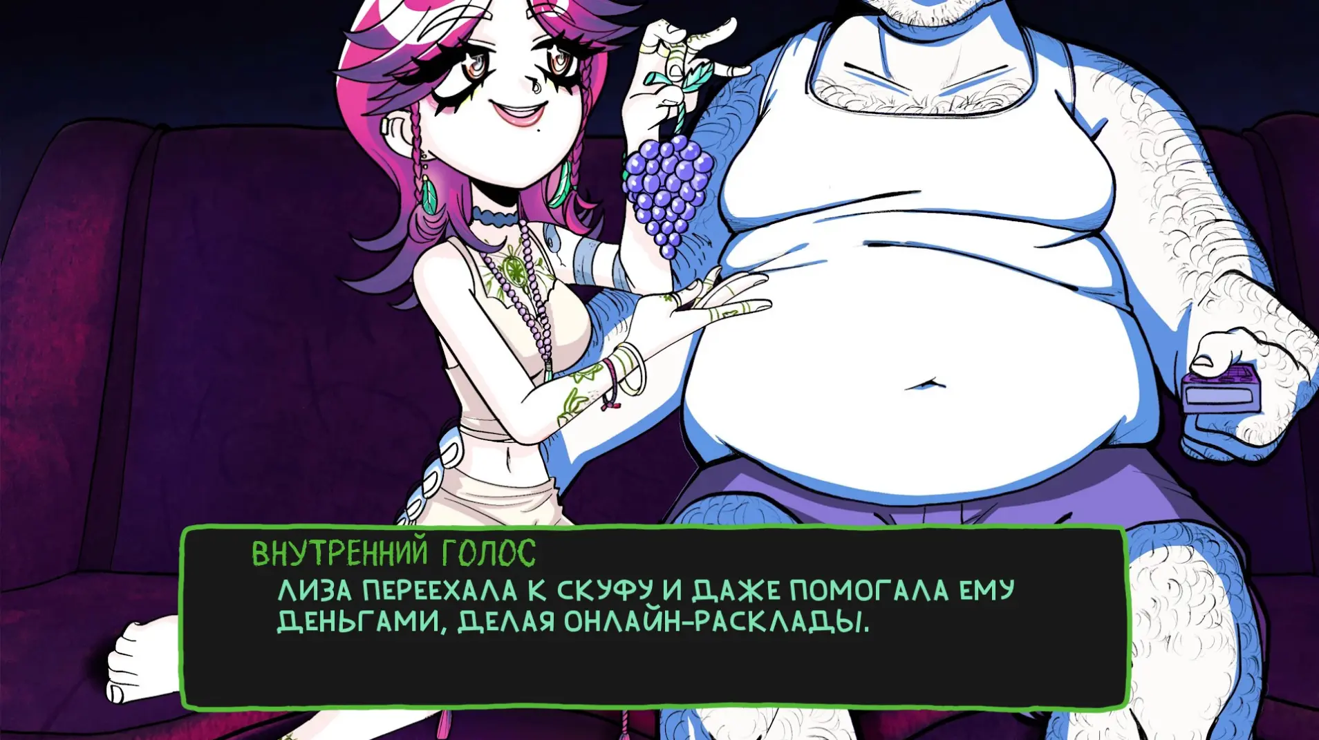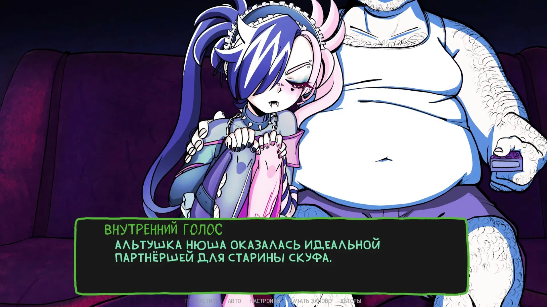 Этой весной студия Terletski Games и художница RIKANI выпустили в Steam игру «Альтушка для скуфа». Если кто-то забыл: скуф — это мужчина средних лет и старше, который выделяется пивным пузиком, небрежным стилем, устаревшими взглядами, любовью к «Танкам» и страстью к вредной жирной пище.