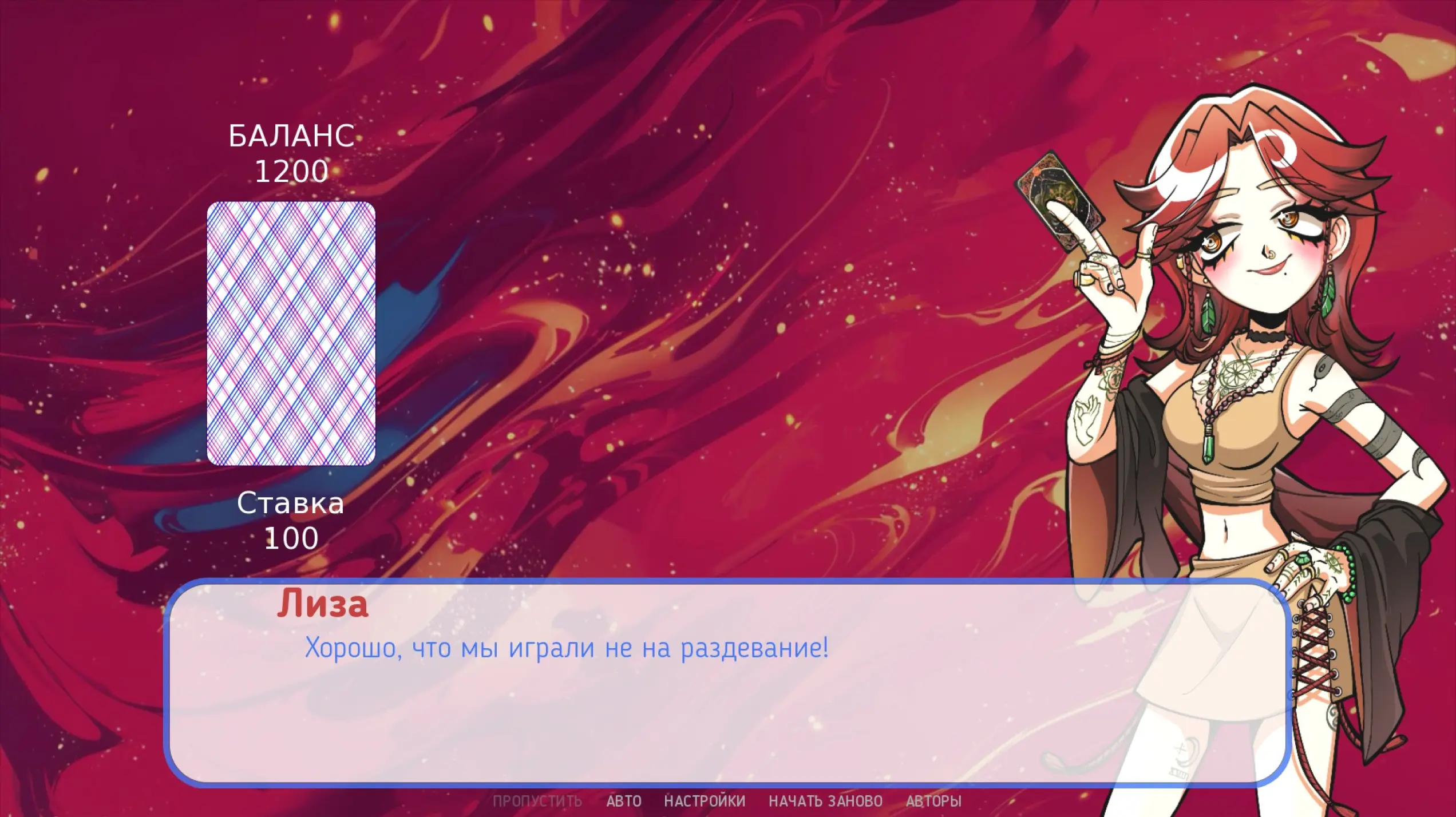 Особа, которая верит в эзотерику, Таро, астрологию, нумерологию. Ее рут физически больно проходить людям, отвергающим все магическое. Девочка после каждого раздела достает карту Таро, чтобы сделать Скуфу предсказание. Разработчики настроили эту механику так, что каждый раз игроку выпадает рандомная карта — якобы это для вас, дорогие, такое гадание. Как говорил классик: «Я уважаю, что они делают, но я не понимаю».