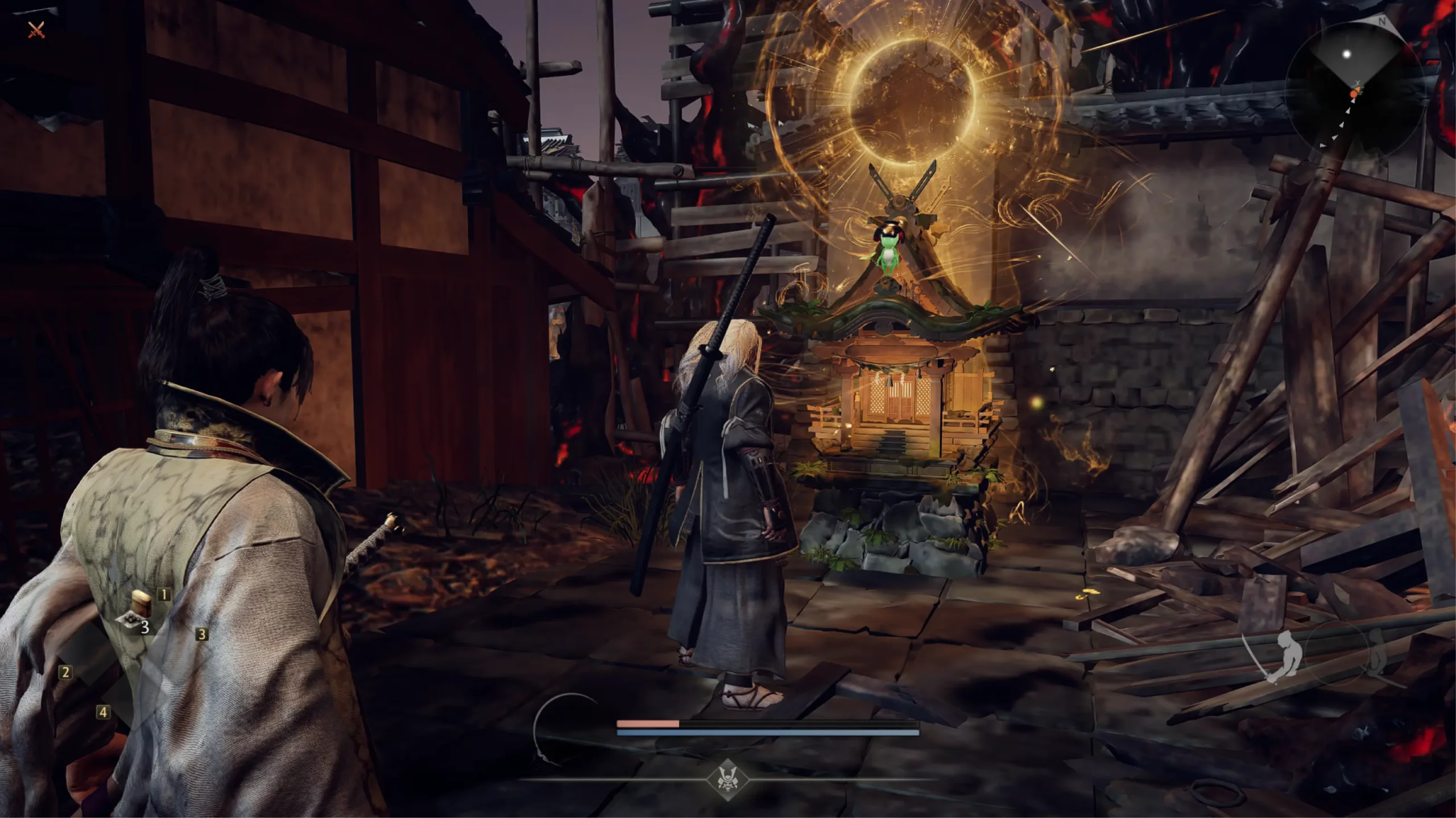 Ниндзя — новый для вселенной Nioh класс, который добавляет игре динамичности. Он бьет резче (особенно в спину), тратит меньше выносливости и полагается на ниндзюцу: бомбы, сюрикены и другие трюки. На боссах стиль не всегда хорош, зато для зачистки и исследования — самое то: быстро бегаешь, подрезаешь врагов издалека и не зависаешь в долгих разменах.