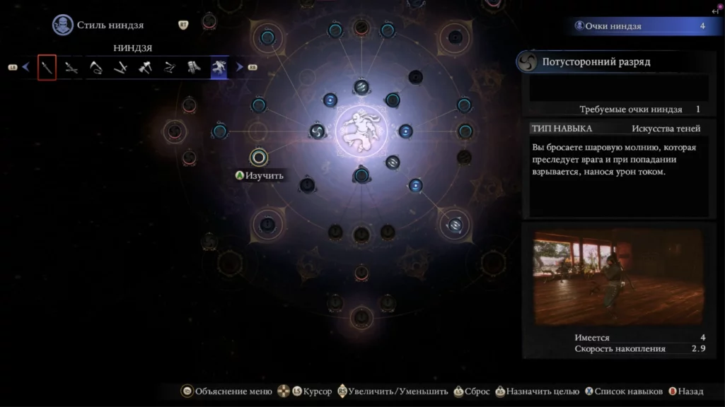 - Активные навыки — в Nioh 3 за определенные предметы можно открывать скиллы из дерева навыков. Для самурая и ниндзя навыки разные. Более того, есть даже навыки для каждого отдельного оружия.