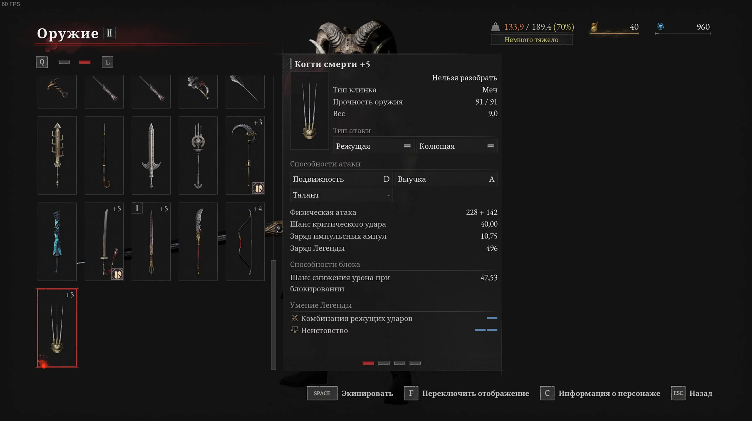 Любителям быстрых атак могут понравиться «Когти смерти»: персонаж превращается во что-то вроде Росомахи из комиксов Marvel. У когтей высокая скорость атаки и часто выпадают критические удары, что дает огромный урон. Однако поглощающая способность при блокировании вражеских атак невысокая, поэтому вместо блокирования лучше уворачиваться от попаданий или парировать.