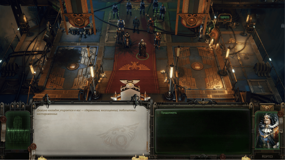 Помимо дизайна, поражает и подход к лору вселенной. Персонажи, то как они разговаривают и многообразие элементов сеттинга, которые затрагивает ваше приключение, не поддаются никакому описанию. До Rogue Trader видеоигры по вселенной WH40k редко затрагивали какие-то темы, кроме центральных звезд сеттинга — космодесанта, хаоситского космодесанта, орков, тау и глобальных военных конфликтов.