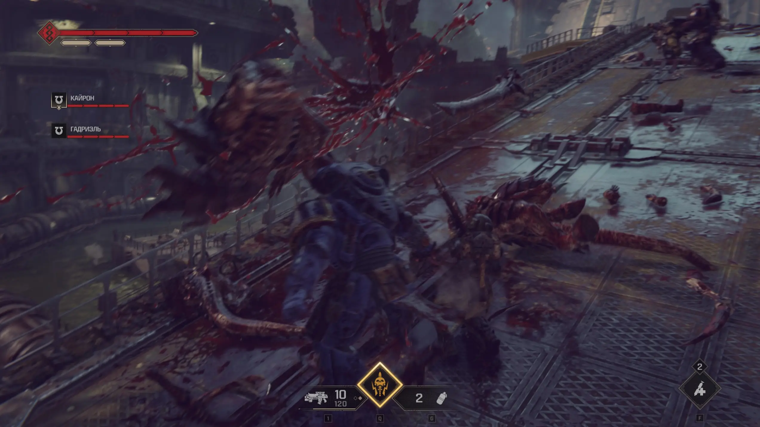 Сюжетная кампания Warhammer 40,000: Space Marine 2 получилась интересной, но спутниками игрока выступают боты. Это можно запросто исправить, ведь каждый уровень шутера проходится и в кооперативе до трех человек. В этом случае хост играет за лейтенанта Тита, в то время как его друзья берут на себя роли Гадриэля и Кайрона. Цели миссий при этом не меняются, зато слаженная командная работа помогает ускорить прохождение и облегчить битвы. К слову, падение здоровья Тита до нуля не всегда приводит к провалу миссии. У соратников есть ограниченное время на то, чтобы привести в чувство поверженного друга.