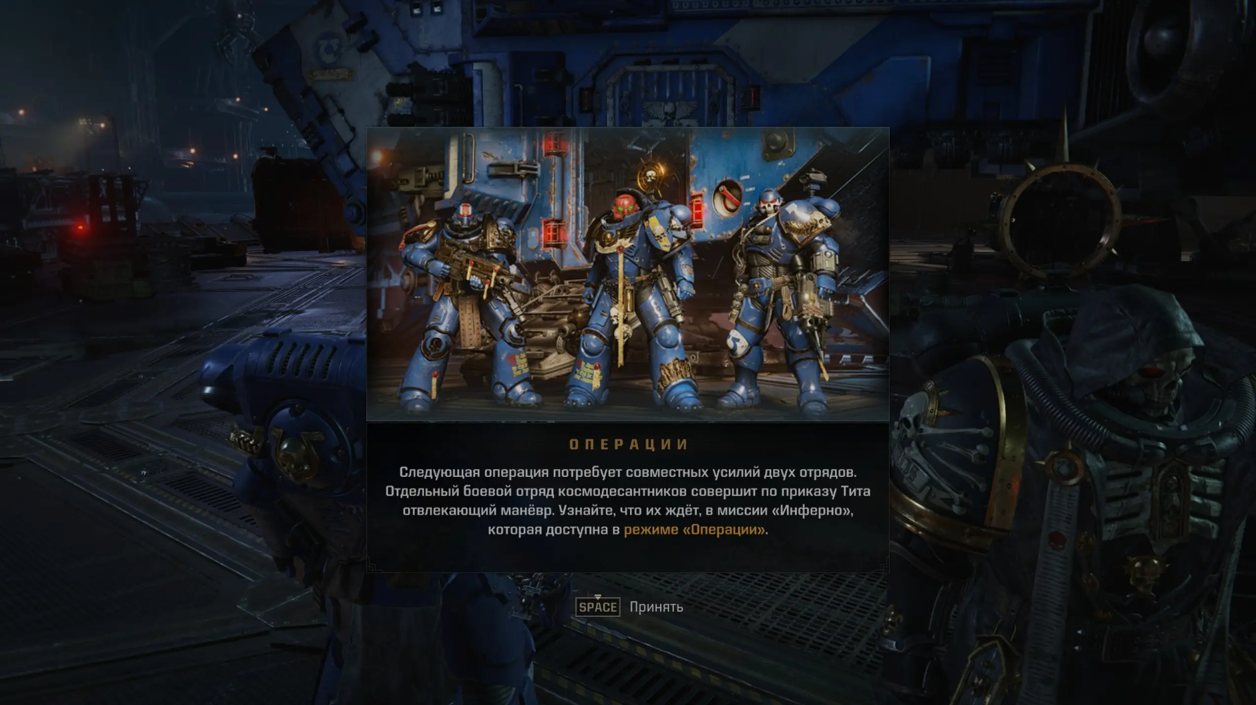 Для тех, кому не хватило кооперативного прохождения основной кампании, есть ряд дополнительных миссий для выполнения вместе с друзьями. Они называются «Операции» и могут быть связаны с сюжетом Space Marine 2. Главная особенность операций заключается в возможности создать собственного космодесантника. За прохождение игрокам начисляют опыт, увеличивающий уровень. По мере прогресса открываются новые предметы и снаряжение.