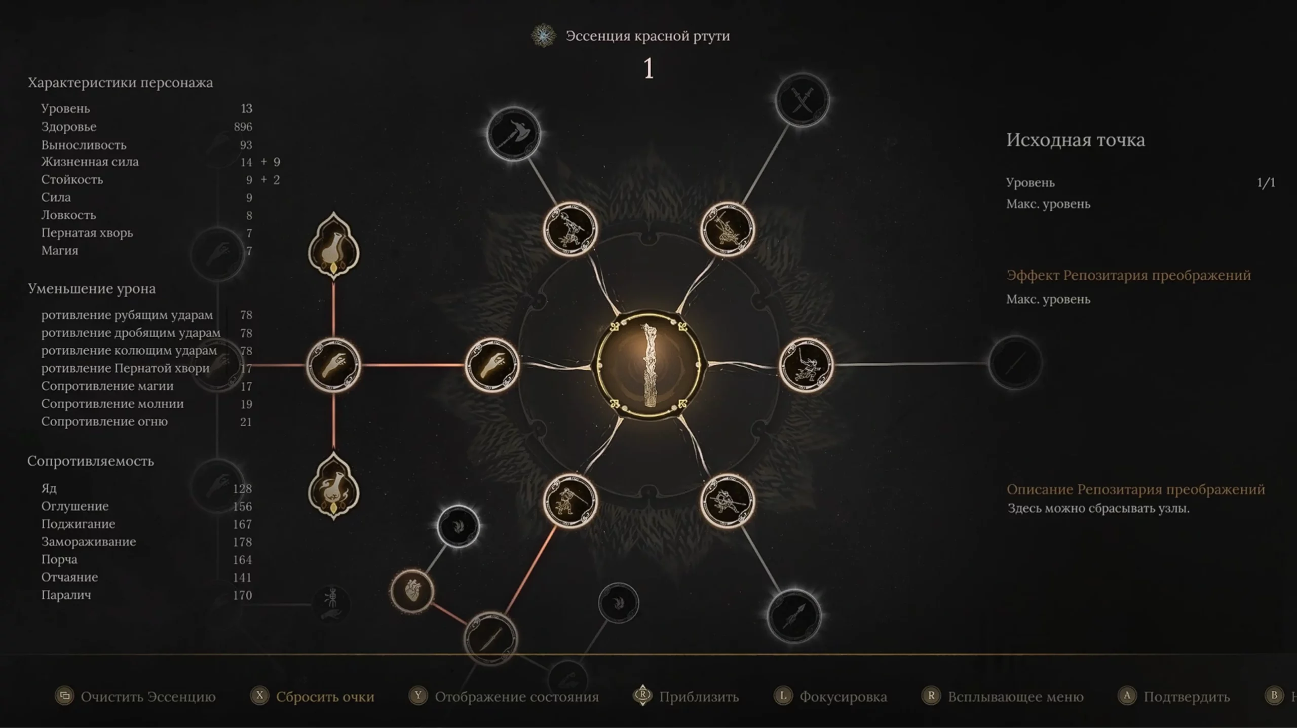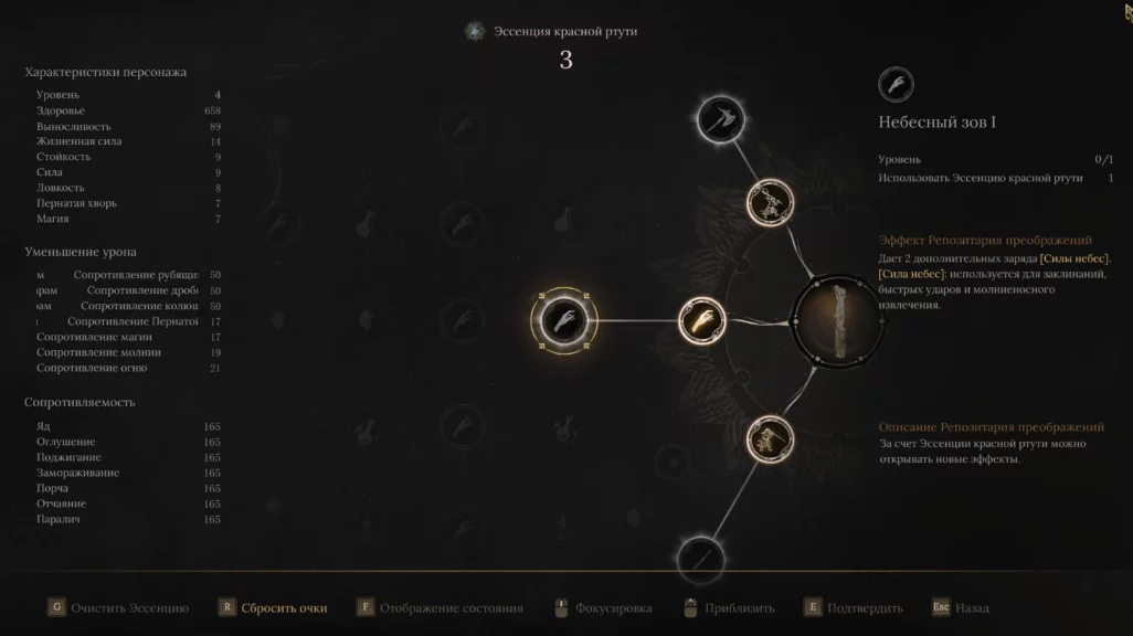 Чтобы открыть новую активную или пассивную способность, необходимо набрать определенное количество красной ртути, а затем в дереве прокачки повысить уровень. За каждый уровень дают одно очко, которое можно вложить в способность в дереве. Навыки разные: от простого увеличения здоровья или силы атаки до повышения количества хилок и открытия способностей, влияющих на стиль боя.
