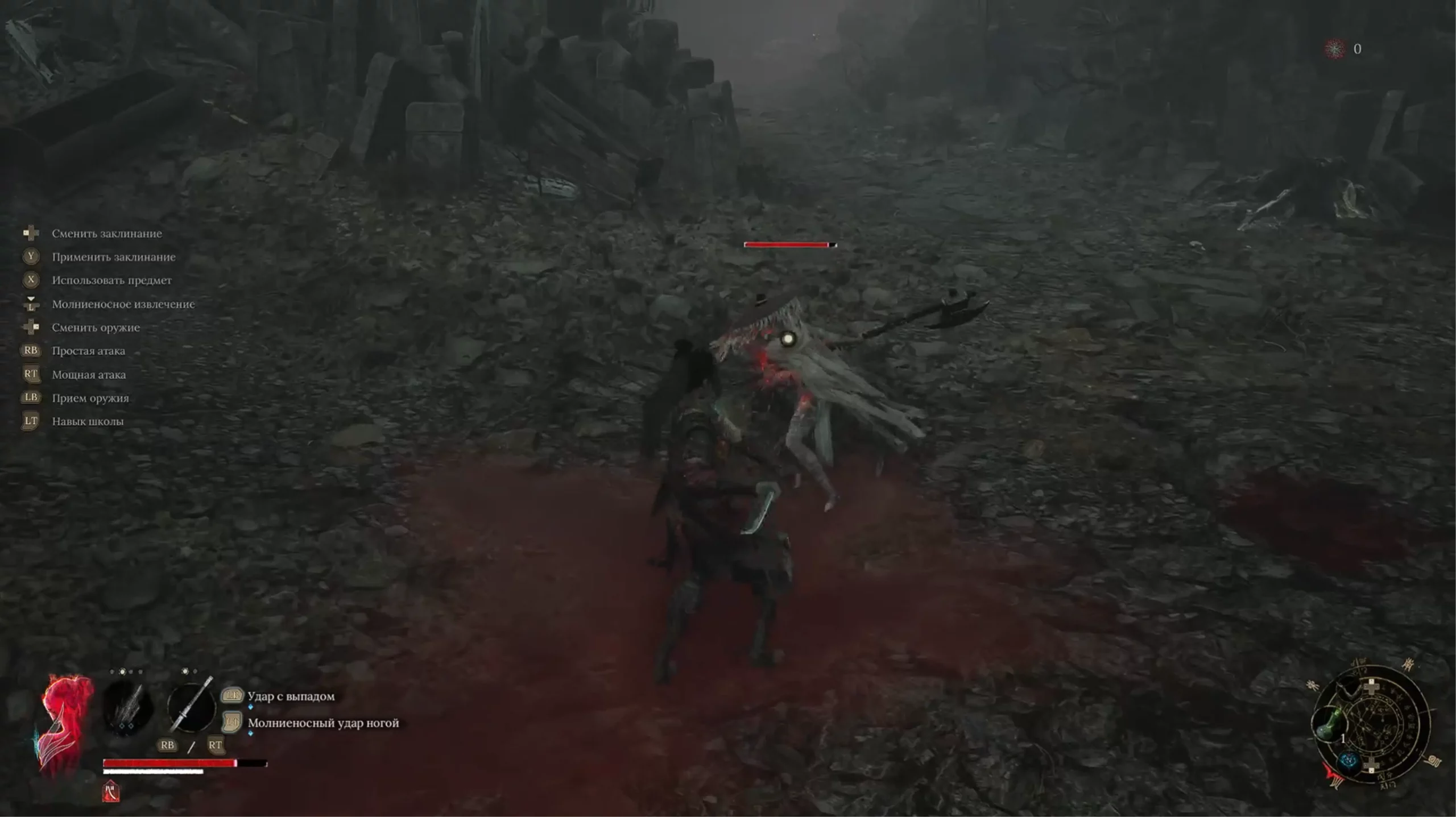 Боевка в Wuchang: Fallen Feathers, как и в любом «соулсе», требует реакции. Простой спам кнопки атаки тут сработает только на рядовых противников. Боссы и мини-боссы нещадно рвут полоску ХП на части. Любая пропущенная атака равняется примерно половине полоски здоровья. Поэтому первым делом прокачивайте пассивки, которые дают жизненную силу, и учитесь вовремя прожимать кнопку уклонения.