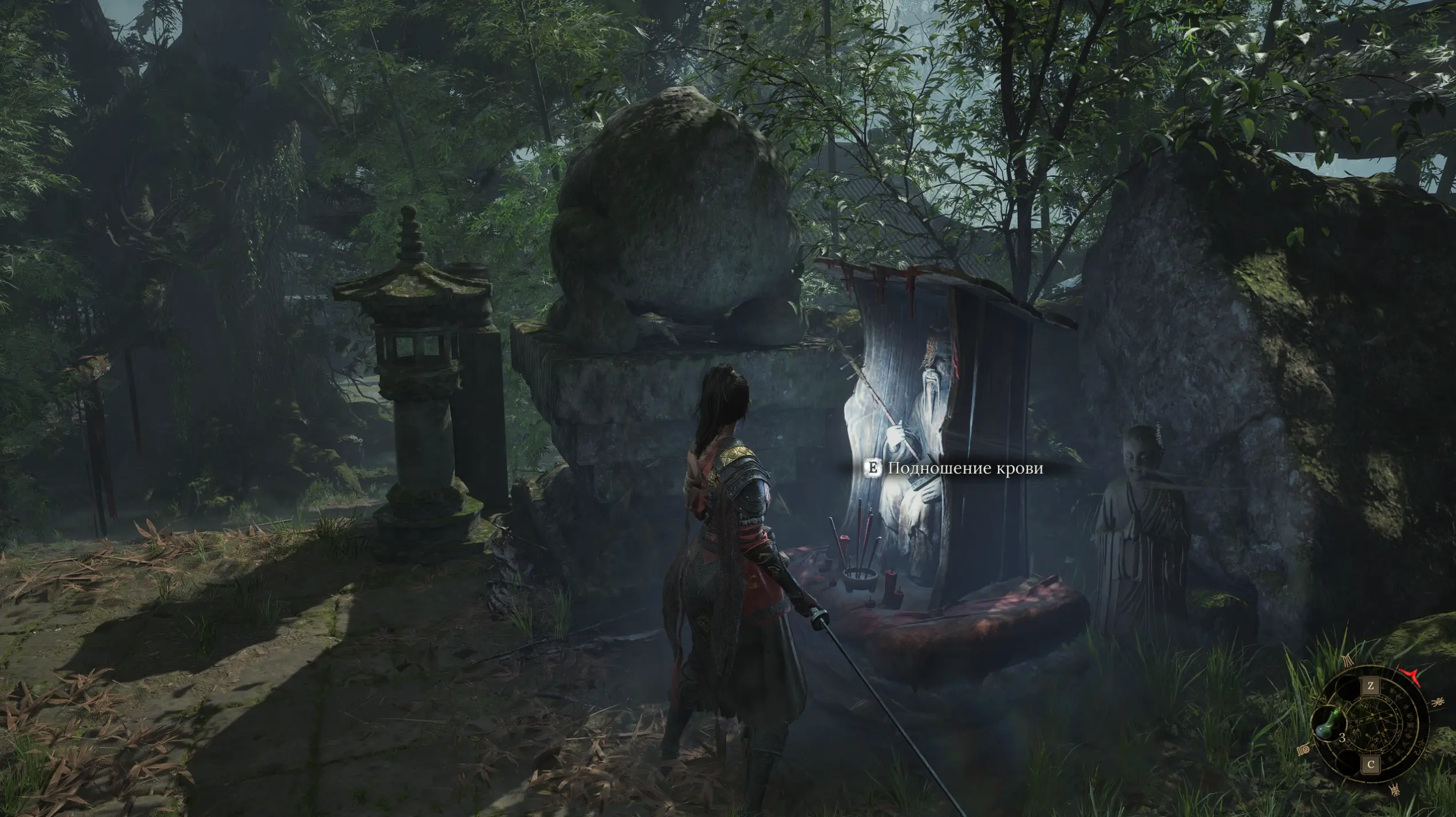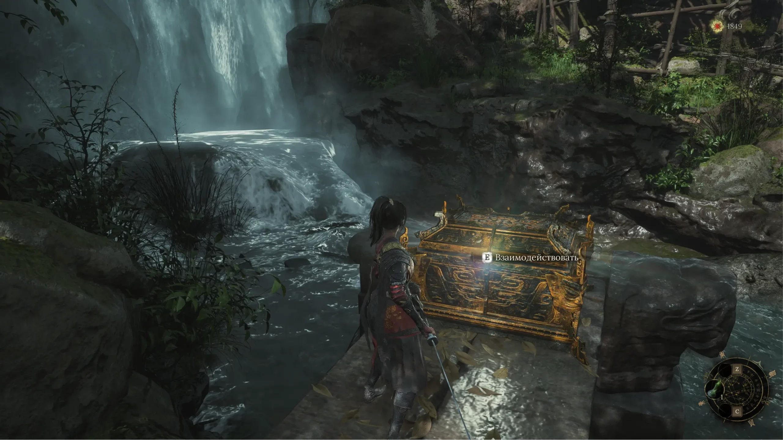 Карты тут нет, так как это не открытый мир, но для удобства ориентации разработчики сделали компас в правом нижнем углу интерфейса. При приближении к NPC, с которым можно поговорить, или к святилищу на компасе появятся соответствующие стрелки, указывающие направление движения. Фича удобная и в контексте мира Wuchang невероятно полезная, потому что локации просторные и найти в них очередного NPC трудно, а пропустить святилище — легко.