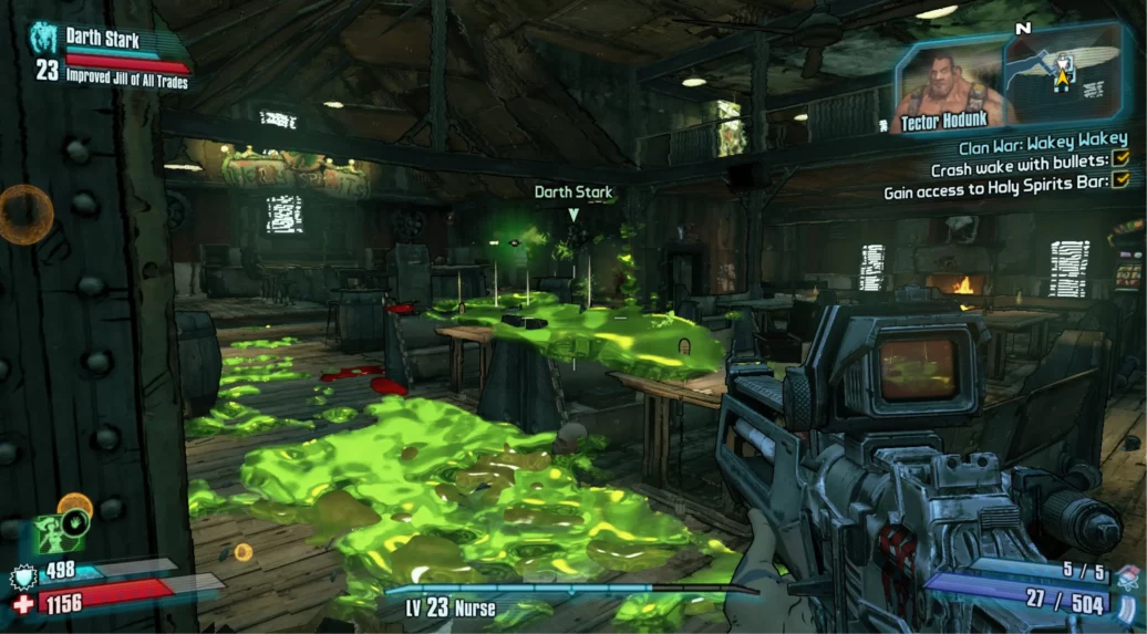 - Borderlands 2 / The Pre-Sequel. Фирменный визуальный стиль игры дополнялся продвинутой физикой жидкостей. Потоки слизи, кислоты и шлака, а также многочисленные эффекты частиц без аппаратного ускорения могут превратить игру в пошаговую RPG.