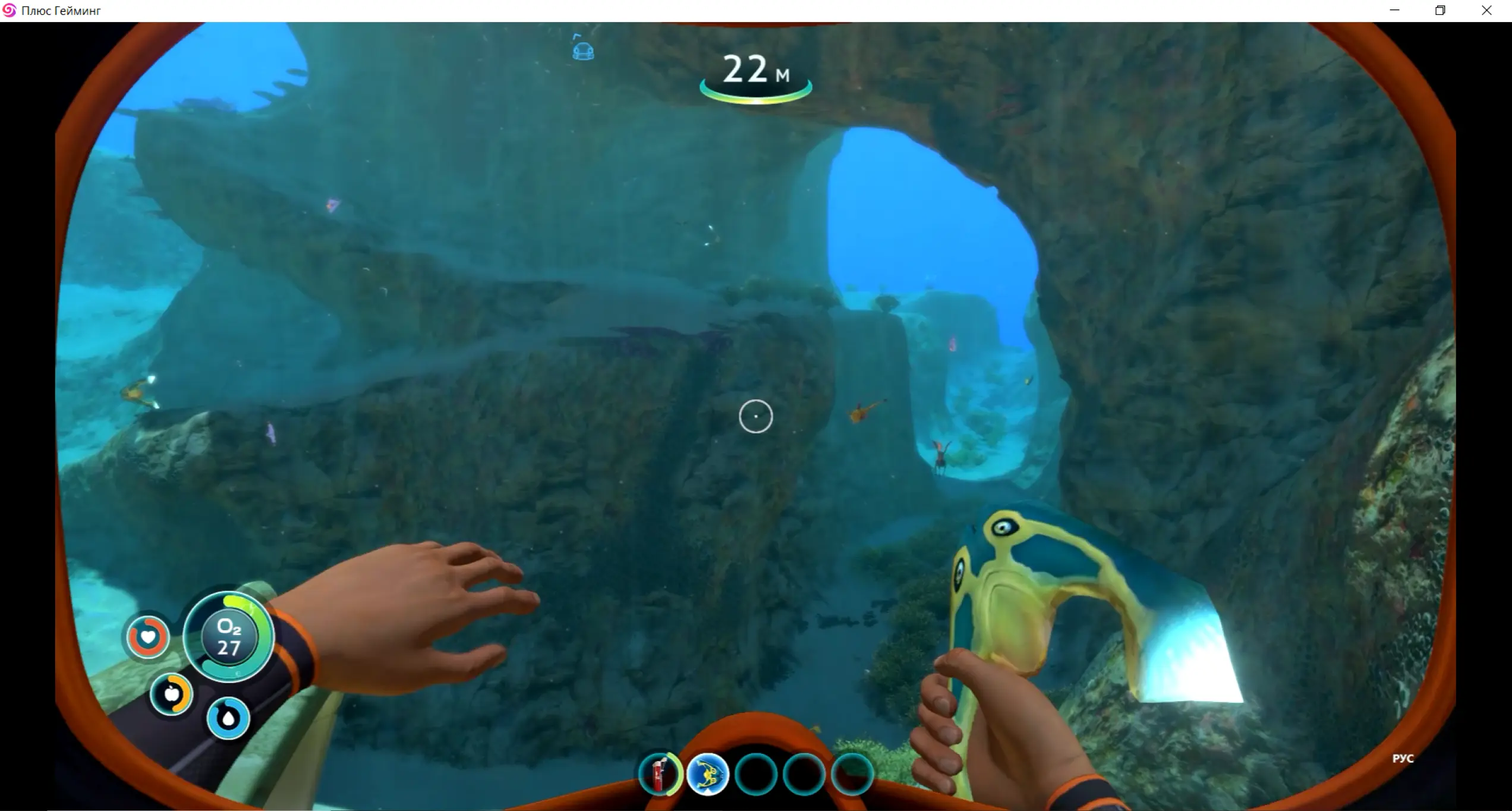 Что ж, Subnautica через «Плюс Гейминг» — это какая-то история с газлайтингом. В процессе я начала думать, что игра сильно визуально устарела, а мои приятные воспоминания о ее красоте — это лишь иллюзия из-за ностальгии. Также я начала винить беспроводную мышку, будто из-за нее увеличилось время отклика. А потом в игре наступила ночь — все встало на свои места: дальний план превратился в набор квадратиков. Я и настройки меняла, и гамму, и режим с оконного на обычный — ничего не помогло. Видимо, на самом деле были проблемы именно с сервисом, потому что я даже установила Subnautica на свой ноутбук для сравнения — нечего было быковать на мышку и видеоигру.