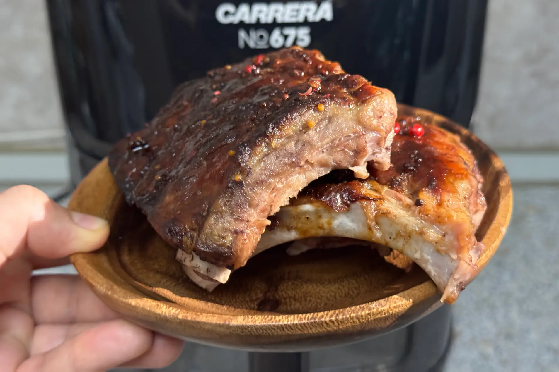 - В итоге достаньте ребра из аэрогриля или духовки и дайте им немного остыть.