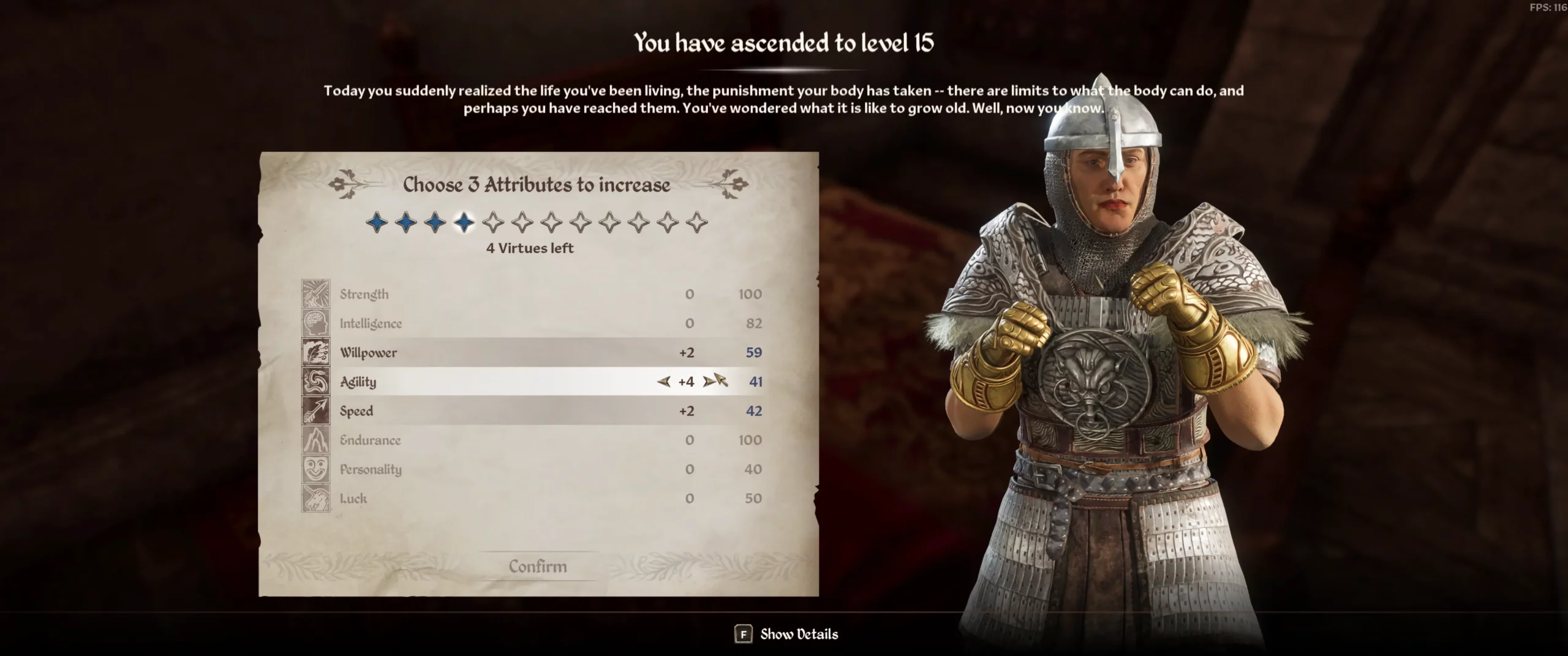 Когда основные атрибуты вкачаны до 100, герой начинает слабеть с каждым новым уровнем
