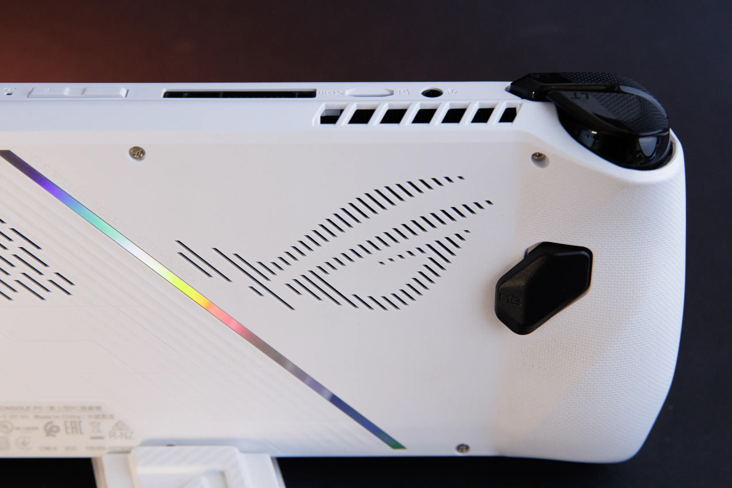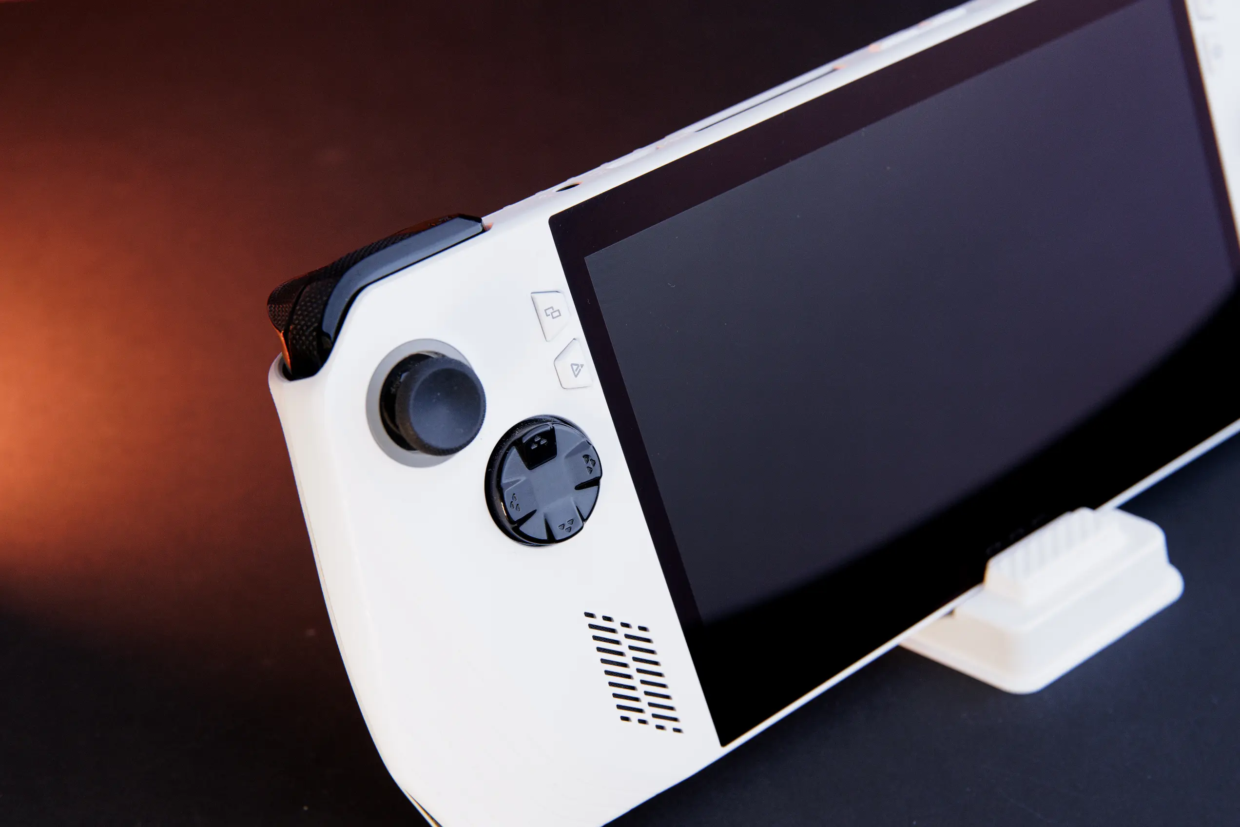 ASUS ROG Ally напоминает Steam Deck, но программируемых «лепестков» меньше — всего 2. Зато консоль можно использовать как полноценный ПК. Подключите монитор, мышку и клавиатуру — и можно работать. Благо Windows 11 это позволяет делать с удобством. Кстати, в кнопку включения встроен сканер отпечатков пальцев. Тоже небольшой удобный бонус.