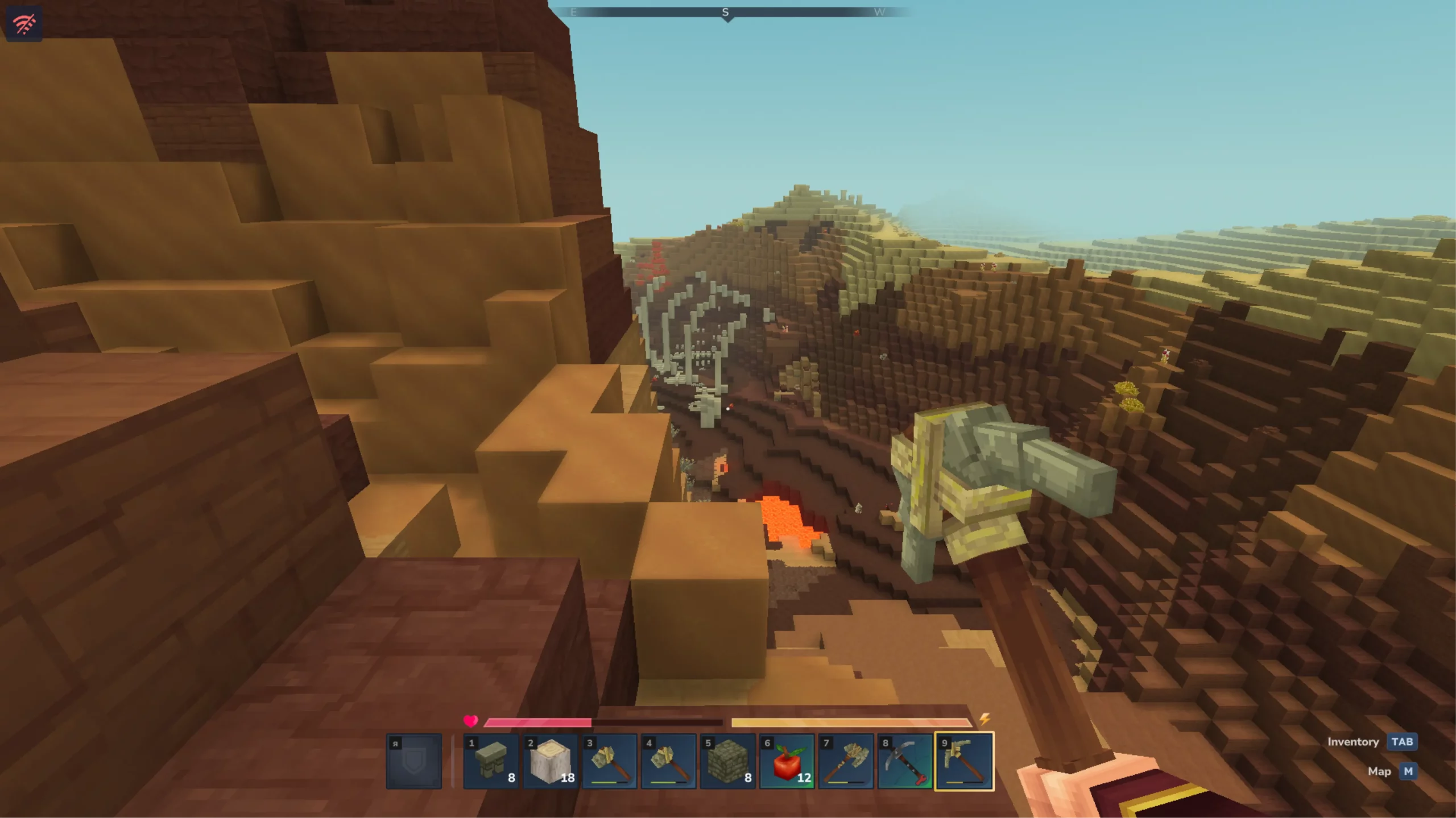 Пока что лучше всего Hytale раскрывается в режиме исследований, где игрок выживает в открытом мире. Четкой конечной цели нет — можно заниматься сельским хозяйством, строить домики, изучать местность. Однако при открытии верстака игрок увидит большое разнообразие инструментов и ресурсов. И если медное и железное снаряжение еще можно сделать, не отходя далеко от точки появления, то все остальные ресурсы находятся в совершенно других природных биомах.