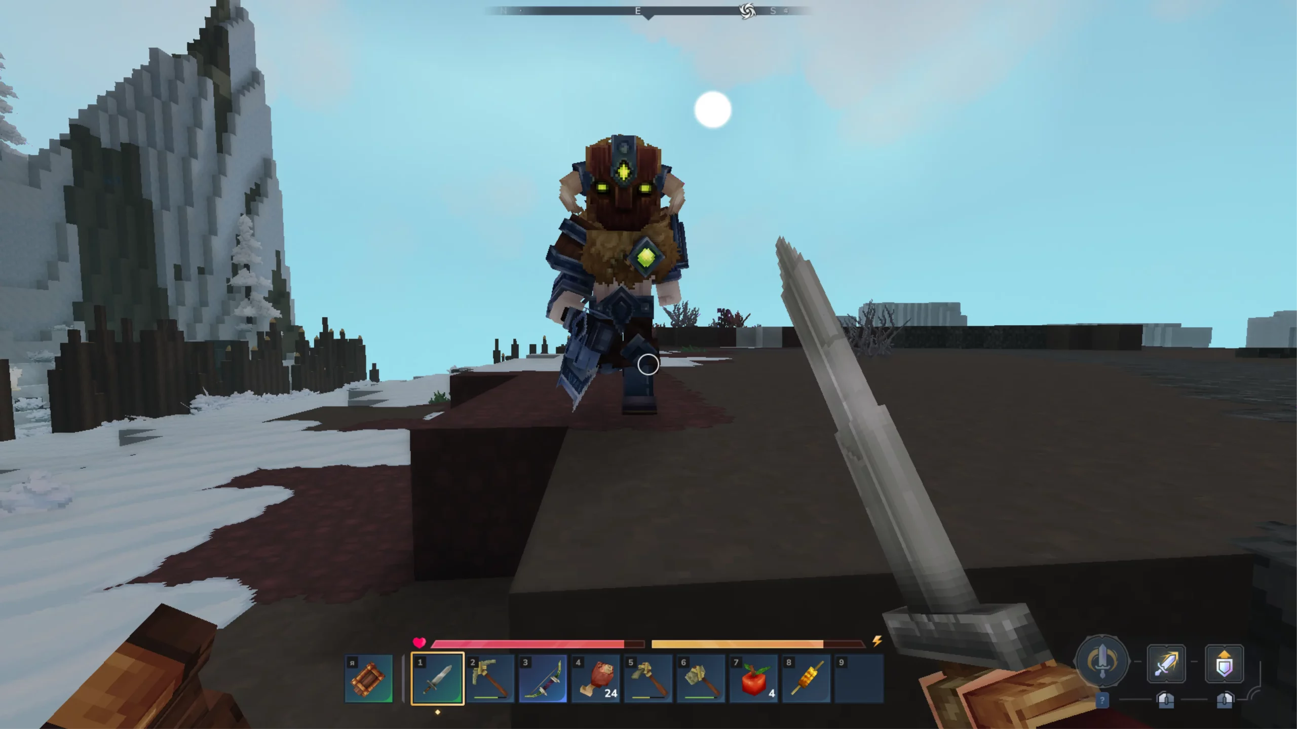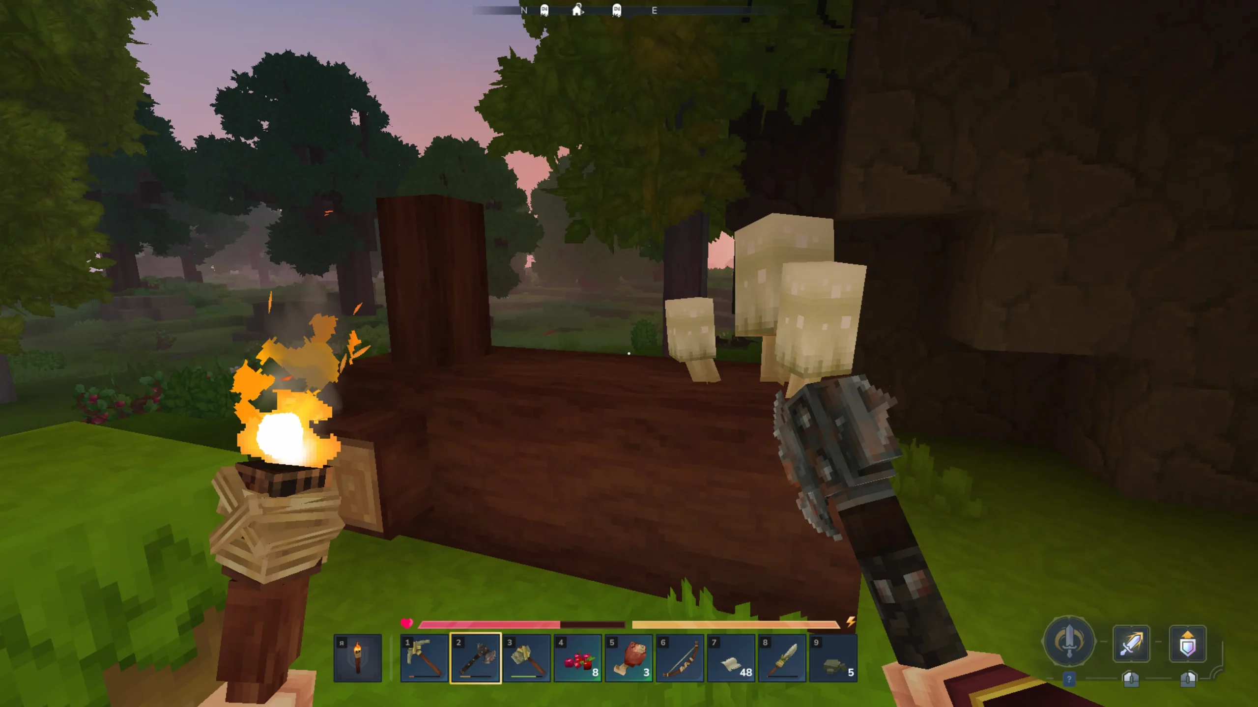 По геймплею тоже есть нарекания. Контента пока маловато: несколько типов ресурсов, монстры и подземелья — после прокачки лучшей брони становится скучновато. Да и бои пока не блещут сложностью: ИИ врагов может «зависнуть» посреди поляны или с трудом найти к вам дорогу. Пока игра больше про уютный гринд, чем про выживание в суровом мире.