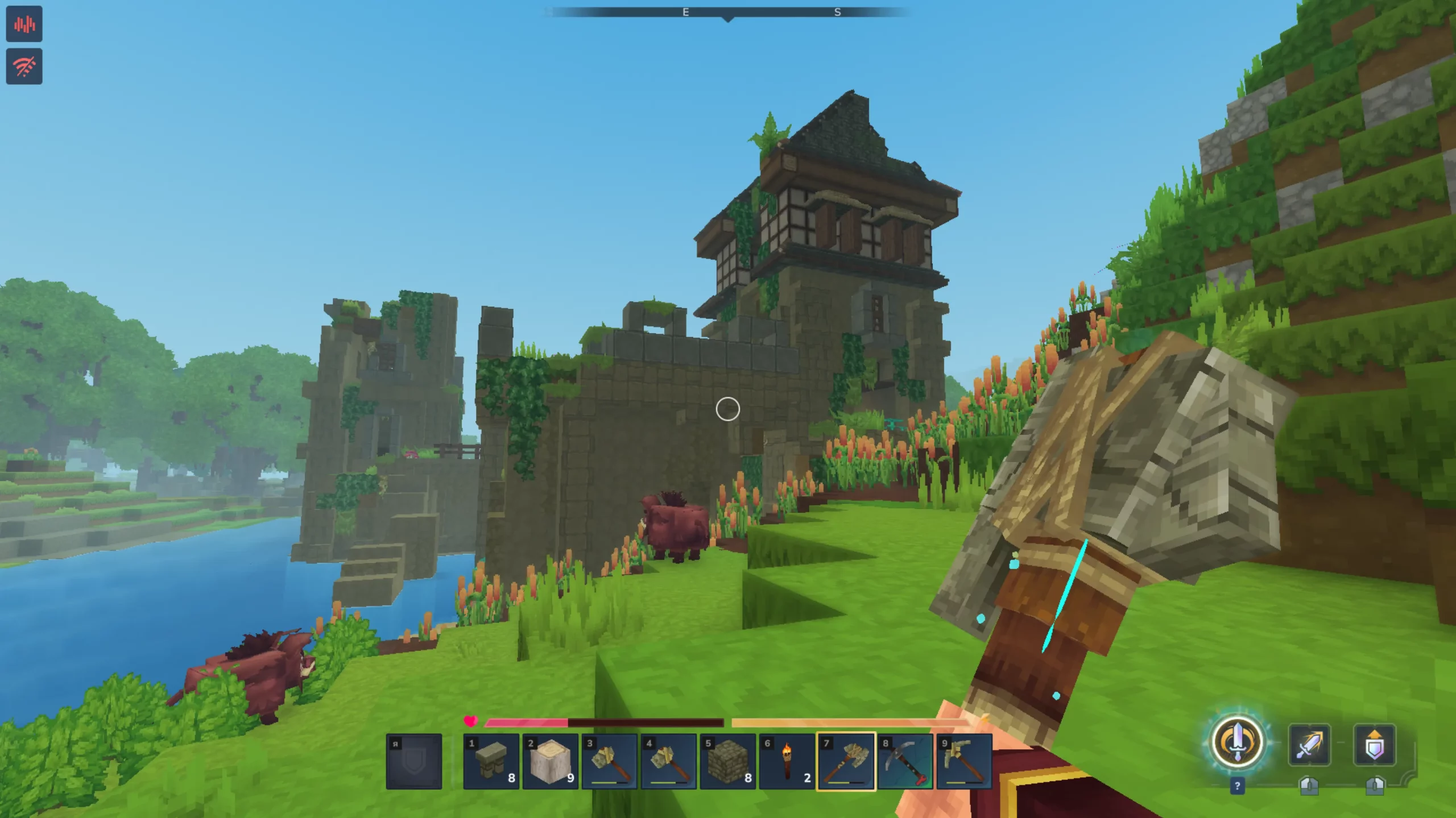 Игрок начинает в заброшенном храме, а на улице видит просторы бесконечного кубического мира. Что? Напоминает Minecraft? О былых знаниях придется забыть, ведь практически сразу Hytale начинает показывать свою уникальную сторону. Например, системы голода в игре нет — ее заменила полоска выносливости, которая восстанавливается автоматически. Персонаж игрока устает после быстрого бега или блокировки атак противников. А вот прыжки и даже подтягивания к уступам выносливость не тратят. Да, в Hytale можно преодолеть целых три блока в высоту.
