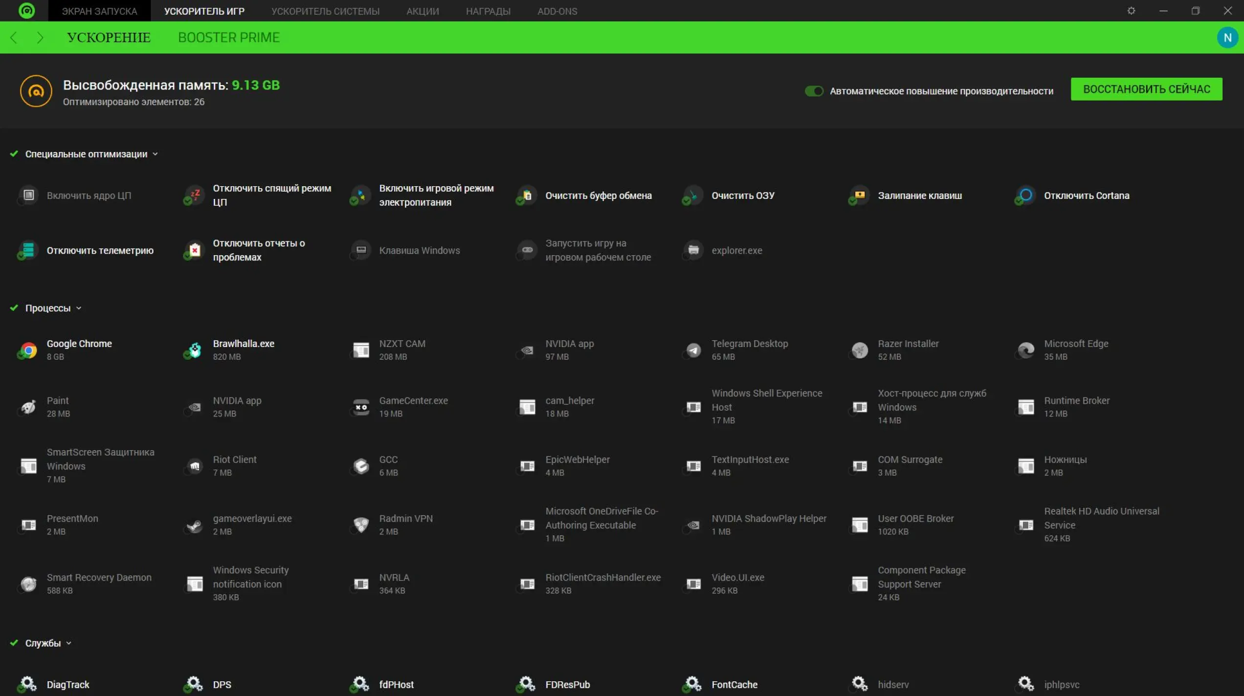 - автоматическая настройка игр: определяет оптимальные настройки графики для каждой игры;