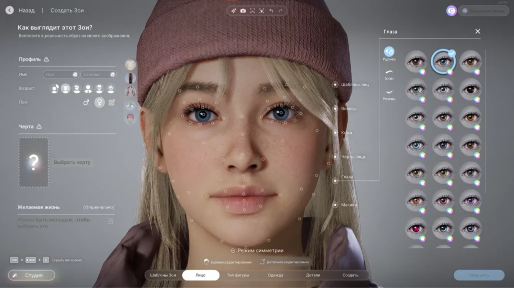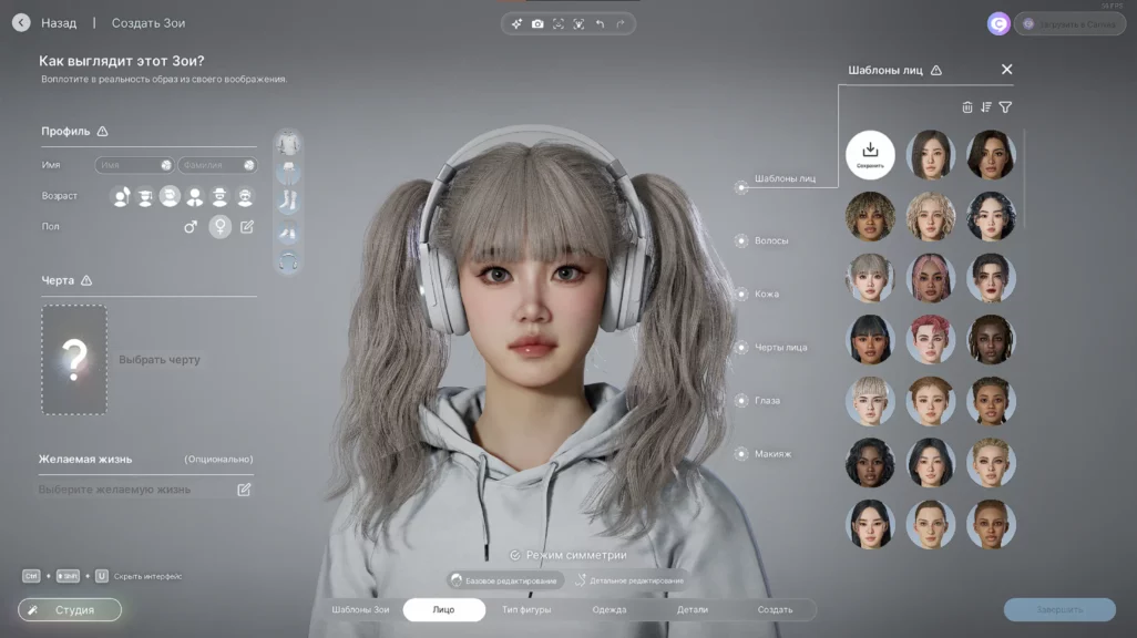 Настройку лица можно делать в двух режимах: базовое или детальное редактирование. Отличаются они количеством «точек», за которые можно потянуть, чтобы настроить ту или иную часть лица.