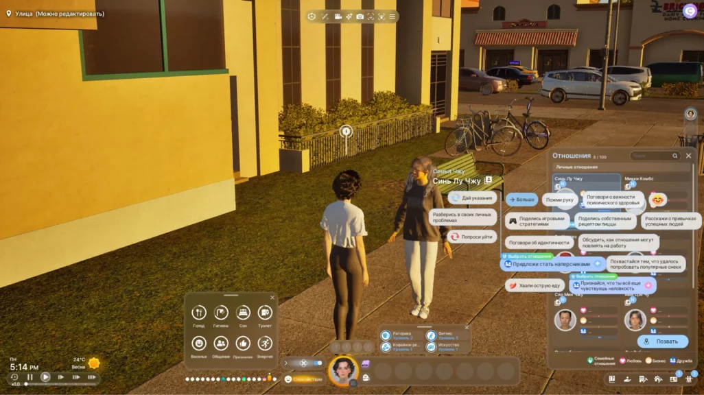 В inZOI игрок может прокачать определенные навыки своего персонажа, примерно по тому же принципу, что и в The Sims. Например, есть фитнес, приготовление кофе, создание медиа, критическое мышление, харизма, искусство, игра на инструментах. Чем больше персонаж занимается тем или иным делом, тем быстрее прокачивается навык. За уровни ремесла могут давать дополнительные награды. Например, улучшение поварских навыков открывает новые рецепты, а прокачка искусства и производства медиа повышает стоимость активов, которые создает персонаж.