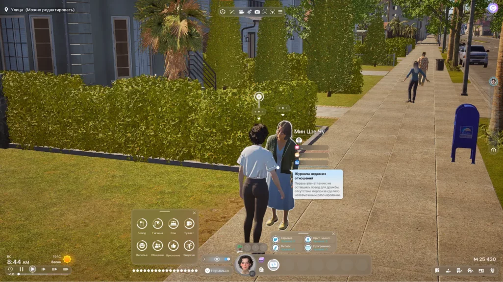 Хотя inZOI разработана на весьма требовательном графическом движке Unreal Engine 5, игра относительно неплохо работает даже на слабом железе. На ПК с видеокартой Radeon RX 6600 и процессором Ryzen 5 5600 в Full HD на высоких настройках графики выдает где-то 30−45 fps. Учитывая неспешный темп происходящего в виртуальном мире, даже этого количества кадров хватает, чтобы с комфортом играть.