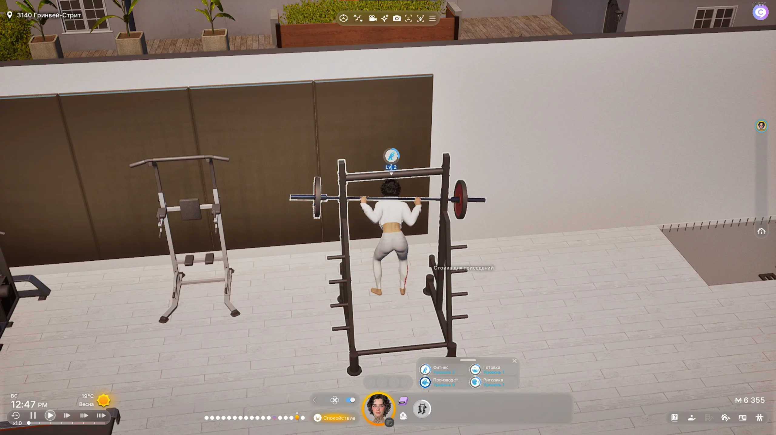 Из интересного можно отметить фитнес. Если заниматься спортом на низких уровнях, персонаж будет еле-еле поднимать штангу или приседать с такой анимацией, будто сейчас его раздавит. Словом, система навыков и прокачки в них сделана неплохо. Но все же навыки качаются слишком быстро: можно буквально за 3−5 внутриигровых дней превратиться из новичка в «мастера спорта». А если персонаж попадет в фазу правильного расположения духа, то прокачка будет идти еще быстрее.