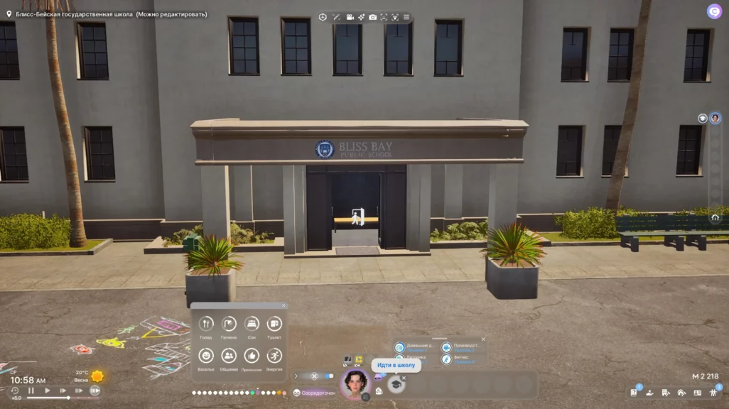 С работой и обучением уже не так весело. Например, система университета и школы реализована так: персонаж заходит в кампус и «учится» в течение нескольких игровых часов. В это время можно только проматывать время, ибо делать ничего не нужно. Если управлять несколькими «персами», то ожидание возвращения с учебы хоть как-то можно скрасить. Но если персонаж один, то проще всего свернуть inZOI и посмотреть в это время видосики или отойти попить чаю, потому что ожидание затягивается на минут 10 реального времени.