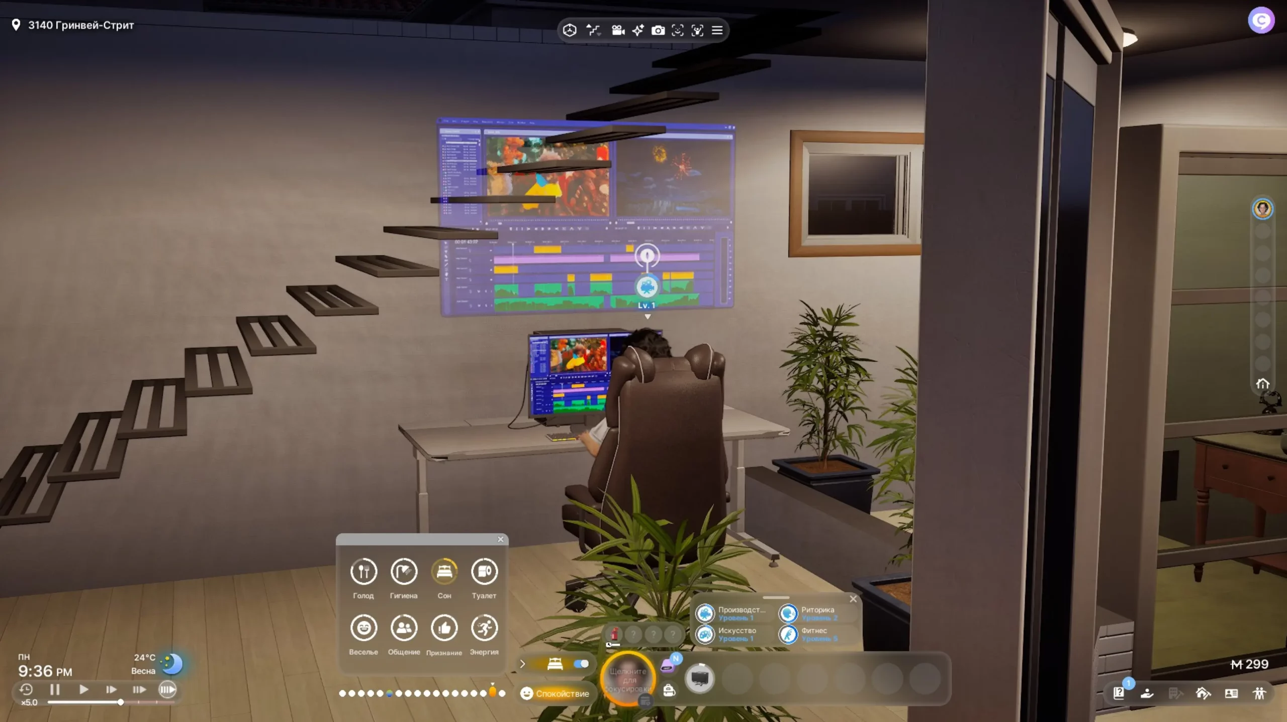 К счастью, не все работы такие — есть и активные виды. Например, у пожарных появляются задачи, которые нужно сделать в течение дня: провести совещание, посидеть за компьютером, покачать мышцы в «качалке». Также можно зарабатывать созданием ценностей: видео, искусство, музыка. По сути, это тоже просто заполнение значка прогресса, после чего ценность будет создана, а затем ее можно продать прямо из инвентаря.