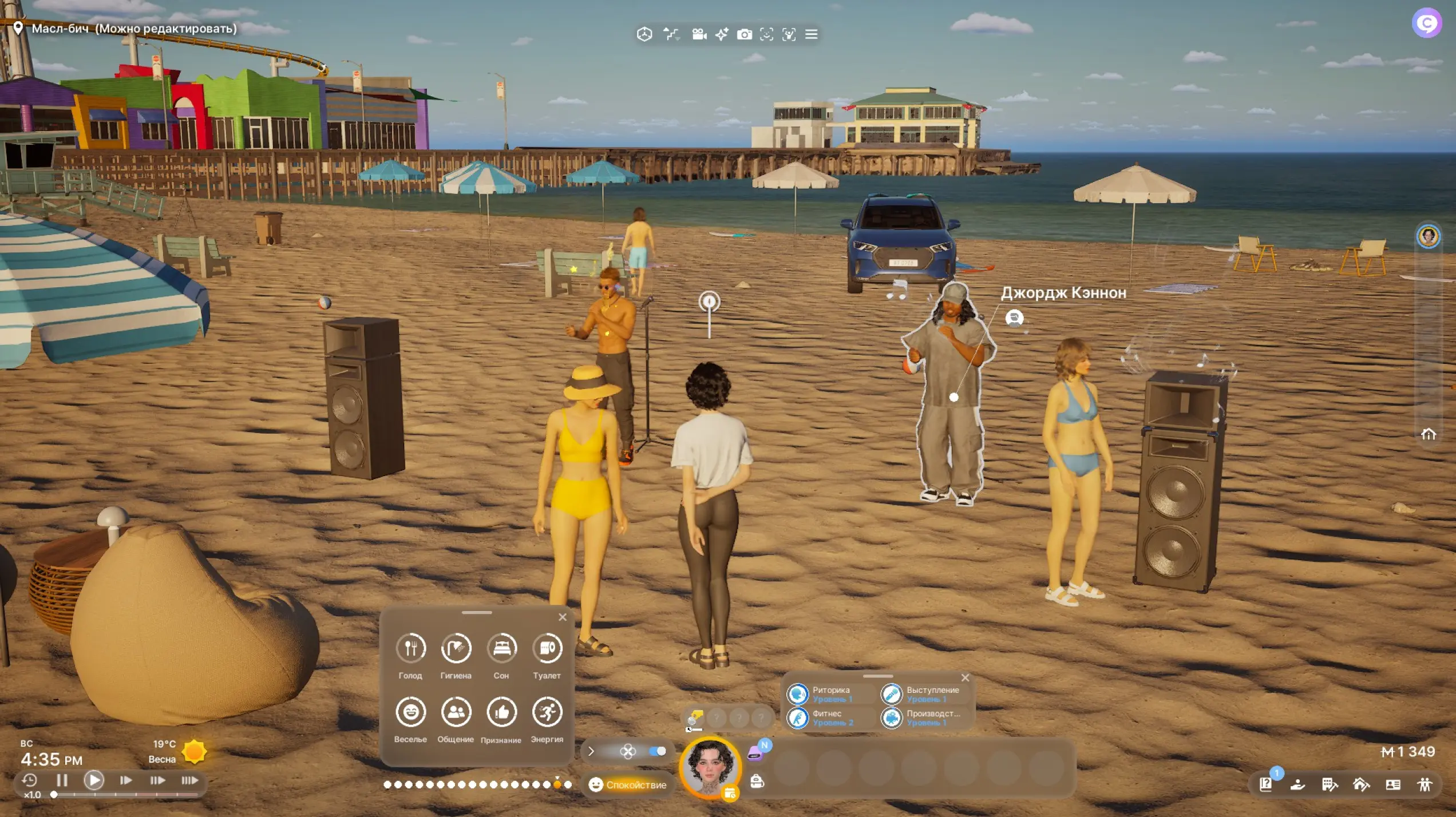 Собственно, развитие отношений, прокачка навыков и работа — основные занятия в inZOI. Но иногда в расписании появляются городские «ивенты». На них собираются многие персонажи, живущие в городе, и происходит какое-то событие. Например, на пляже Блисс-Бей можно застать рэперов.