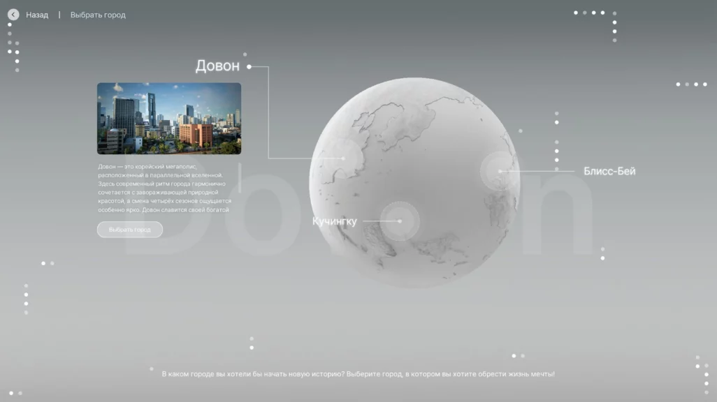 Сразу после создания персонажа игроку предлагают выбрать один из двух городов для игры: