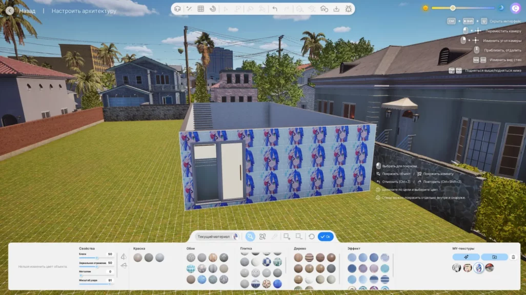 Как и в случае с одеждой, на элементы дома и некоторую мебель можно накладывать MY-текстуры. В теории вы сможете даже воссоздать ваше реальное жилище в inZOI, фотографируя отдельные куски стен, пола, мебели и накладывая их в качестве текстур на внутриигровые предметы.