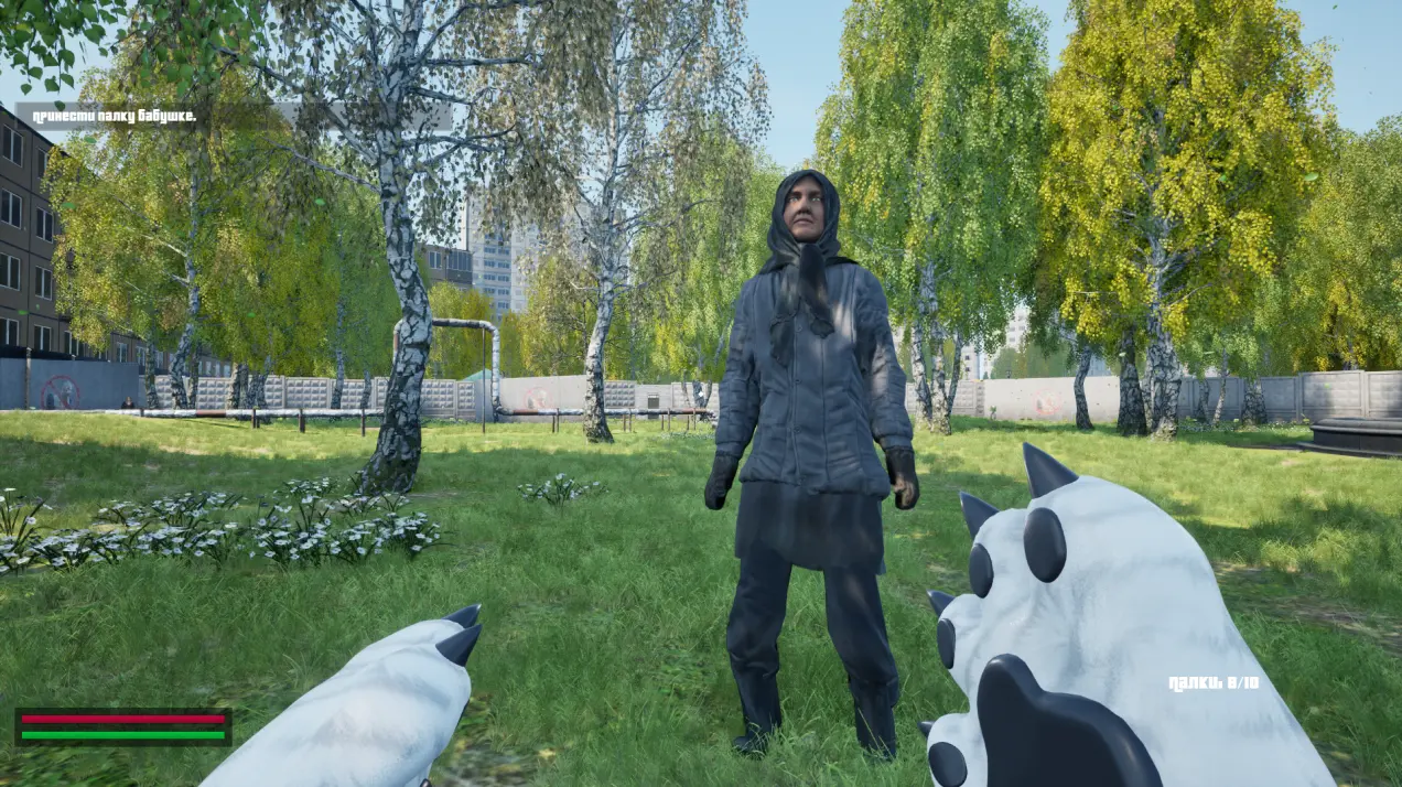 Первые минуты геймплея — это встреча с бабушкой квадробера, которая вручает игроку палку и обучает базовым механикам. Например, приносить эту самую палку обратно.