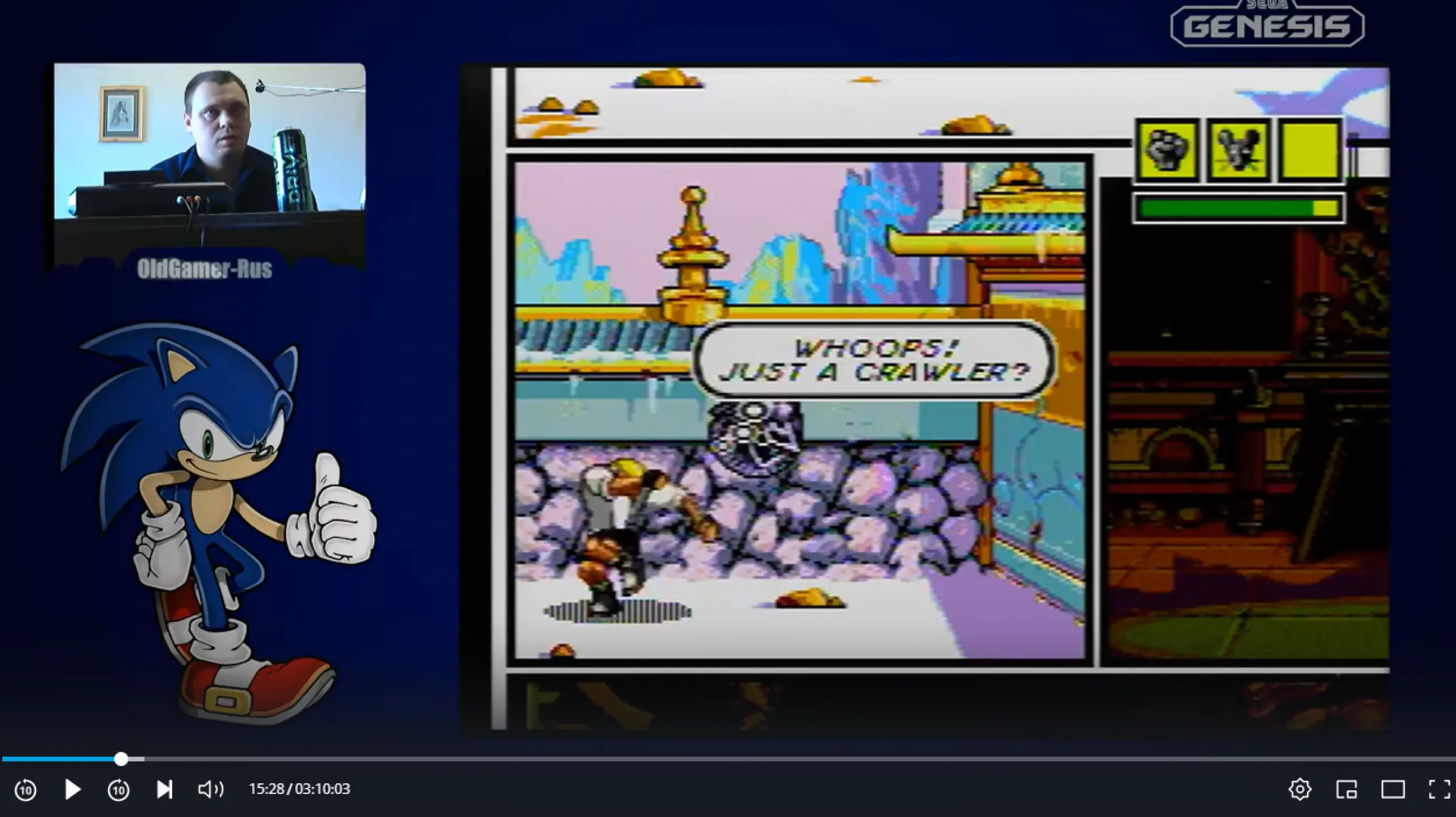 А вот этот контент «для олдов» с Dandy, Sega, NES и 3DO попал мне в самое сердечко. На таких эфирах я словно погружаюсь в атмосферу своего лампового детства — блогеры соревнуются в «Марио», танчики, «Черепашек Ниндзя», «Червяка Джима» и в сотни других легендарных игр на картриджах. Здесь собираются, чтобы пообщаться под фоновую музыку из «восьмибитки», а заодно и поиграть.