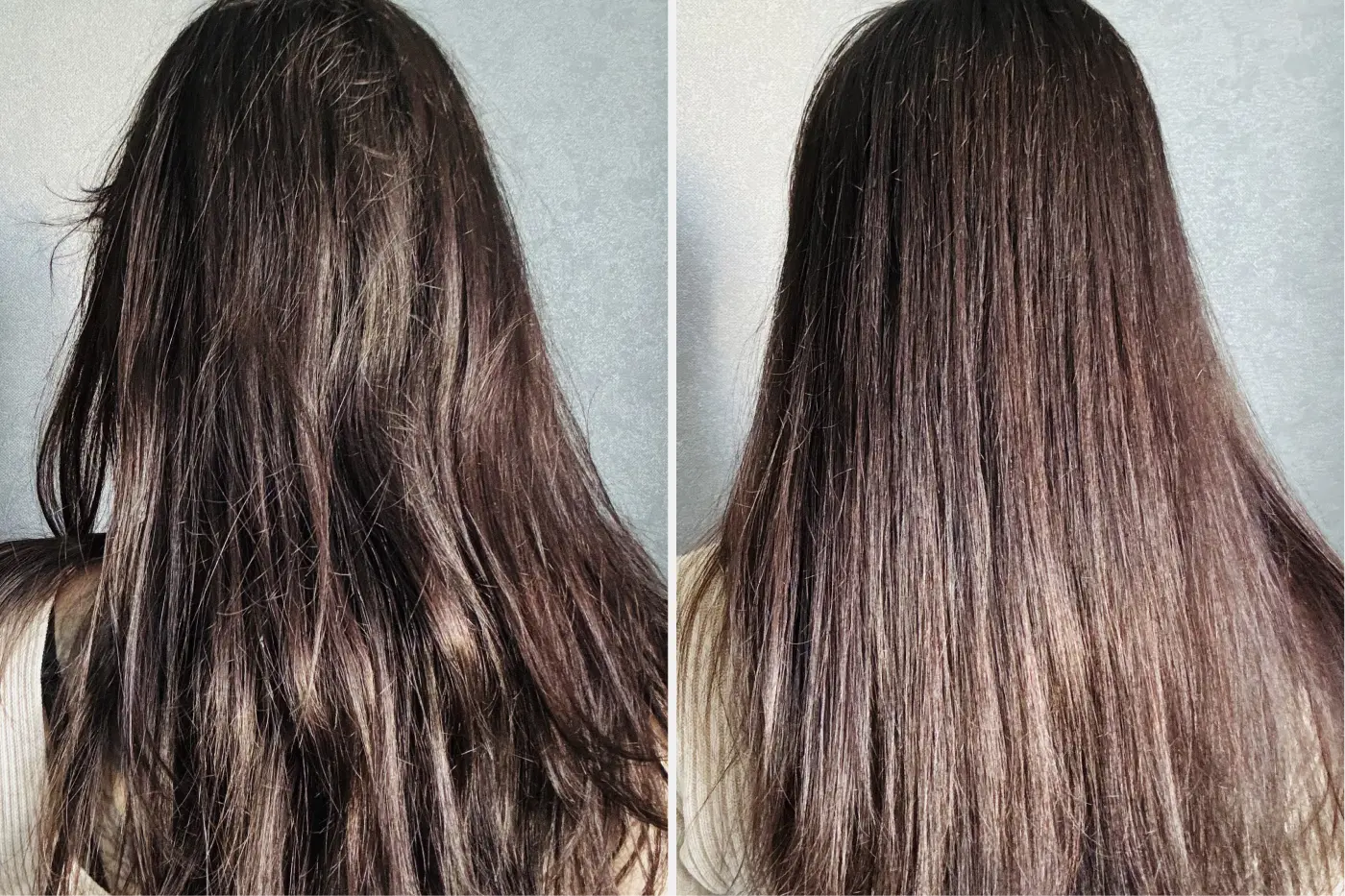 Это одна из моих любимых фишек, потому что благодаря встроенному ионизатору волосы становятся послушными, гладкими, не путаются и не пушатся как во время сушки, так и после нее. А какие чудеса ионизация способна сотворить в паре с насадкой с питательными веществами! Можете взглянуть на мои фотографии «До» и «После».