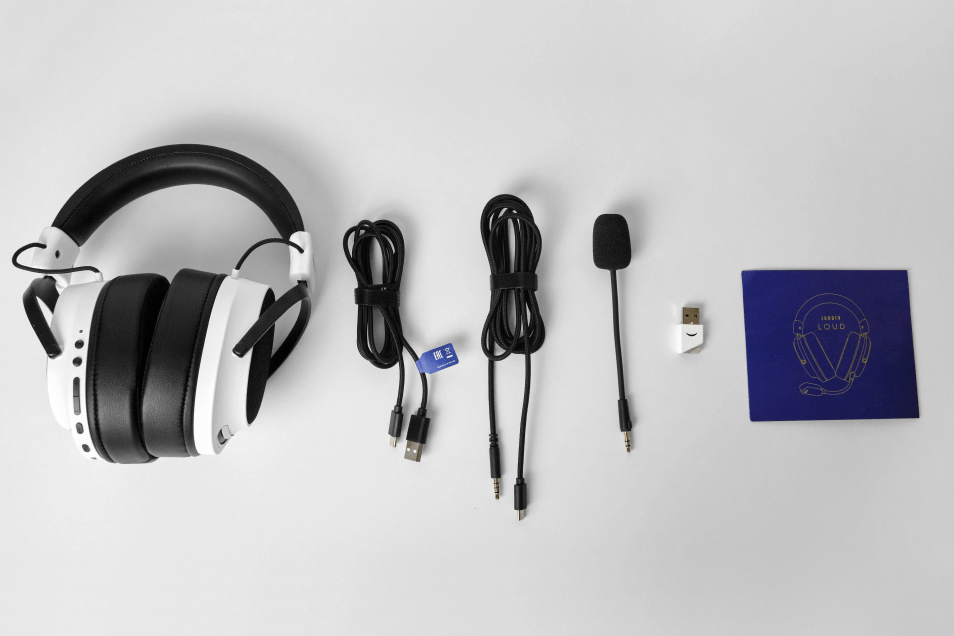 - Беспроводное соединение: гарнитура Lunacy Loud имеет беспроводное соединение с устройствами через технологию Bluetooth или по радиоканалу 2,4 ГГц, что позволяет избежать проводов и обеспечивает более свободное движение во время использования с минимальными задержками.