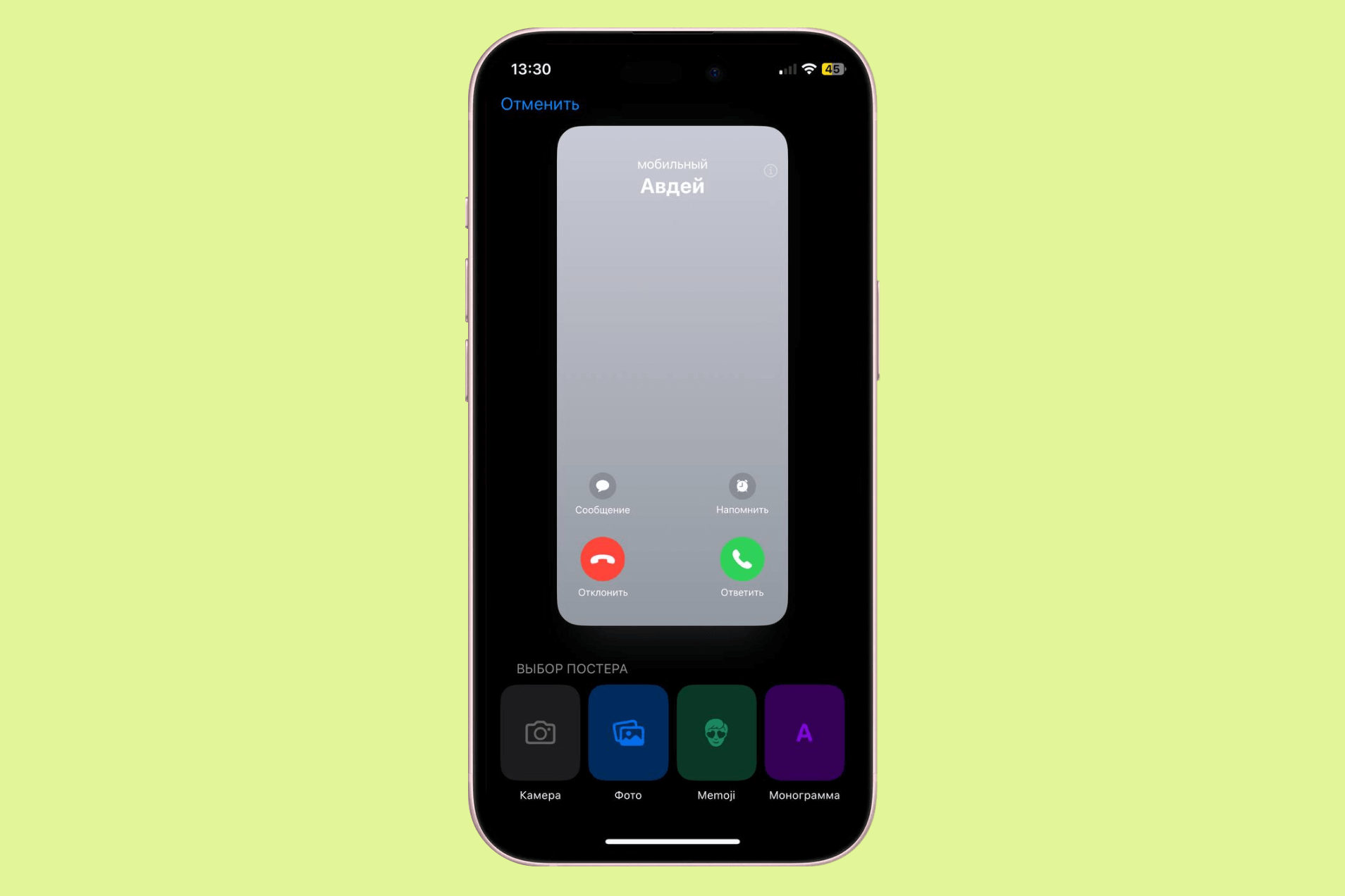 Так, в приложении «Телефон» теперь есть так называемые «Постеры контактов», можно настроить то, что видят собеседники, когда вы им звоните — фото или Memoji. Также настраивается шрифт и фон.