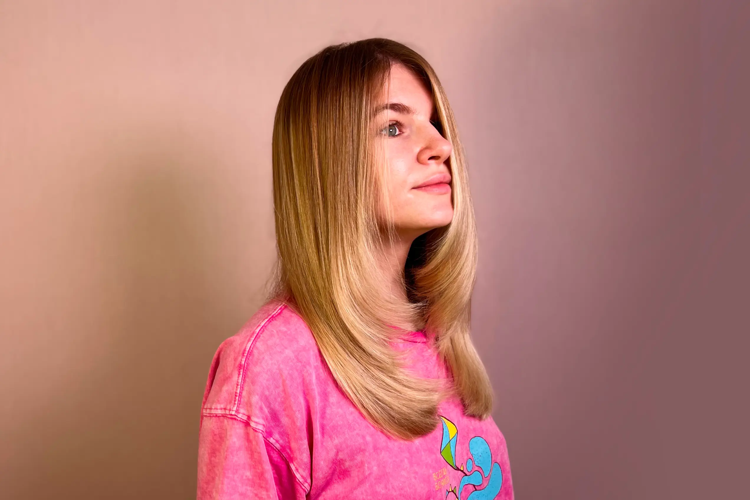 Вуаля, вот так выглядят волосы сразу после манипуляций с этой насадкой: аккуратные и блестящие.