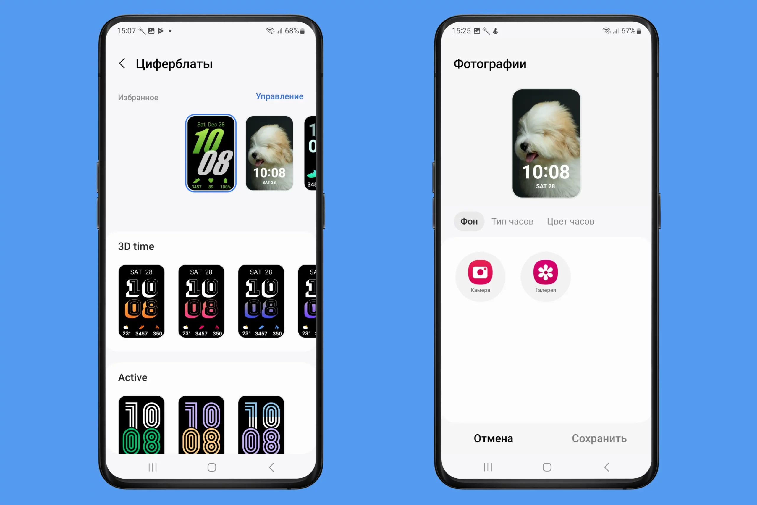 Качество AMOLED-экрана — без вопросов: на солнце все прекрасно читается, изображение четкое и насыщенное. Кроме того, есть режим Always On Display, позволяющий постоянно выводить на экран тускло светящуюся версию циферблата. А его внешний вид можно менять с помощью приложения Galaxy Wearable: в нем уже предустановлена сотня вариантов на выбор. Можно кастомизировать экран часов, использовав собственное фоновое изображение и отрегулировав выводимые поверх него параметры.