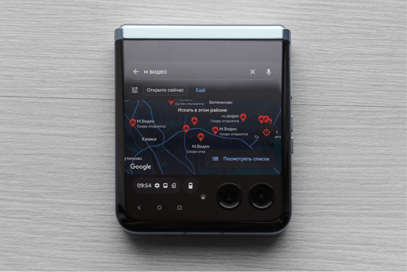 Размер внешнего экрана — 3,6 дюйма, разрешение — 1056×1066 точек, тип матрицы — AMOLED, частота 144 Гц, есть HDR10+, а максимальная яркость составляет 1100 нит. Чем примечателен именно этот внешний дисплей? Во-первых, он тоже очень качественный и вполне мог бы быть основным экраном в каком-нибудь смартфоне с физической клавиатурой, уж больно хорошее здесь разрешение и качество картинки. Во-вторых, маленький экранчик поддерживает полноценную работу отдельных приложений. Помимо музыки и календаря, однозначно стоит выделить «Google Карты» — это классный сценарий использования. А еще на этом экране можно даже играть в поддерживаемые игры. Несколько уже предустановлено, а дополнительные можно скачать в Play Market.