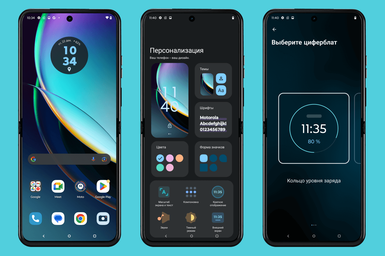Смартфон работает на Android 13 с некоторыми доработками от Motorola. Появились собственные жесты для снятия скриншотов, разделения экрана и дополнительные возможности кастомизации. Само меню также слегка изменено, чтобы лучше соответствовать стилю Moto. В остальном же перед нами чистый Android со всеми его плюсами.