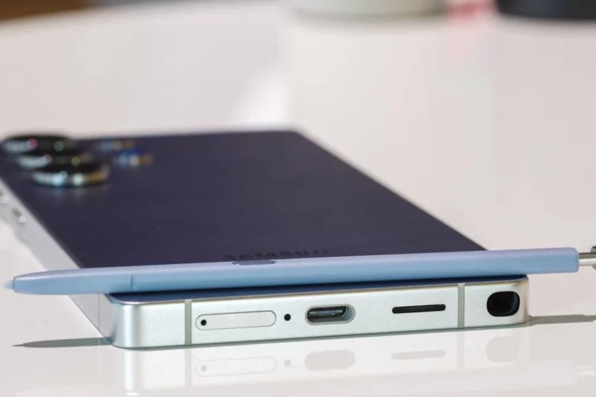 Со стороны задней панели изменений больше: у 16 Pro Max есть узнаваемый блок камер под три объектива, лидар и вспышку, а у Samsung камеры расположены в отдельных «колодцах», и их не три, а четыре, плюс окошко лазерного автофокуса и вспышки. Но главное отличие «Галактики» — отсек для стилуса S Pen в нижнем торце. В текущем поколении «перо» потеряло часть функций, но сохранило базовые возможности: облегчает рисование, ведение заметок и рукописный ввод. Особенностью iPhone стала кнопка камеры, помогающая фотографировать и записывать видео без касания экрана.