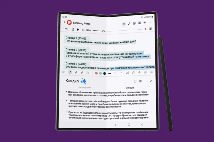 Нейросетевые функции стали новым полем конкуренции, и у обоих производителей есть свои предложения — Galaxy AI у Samsung и Apple Intelligence у Apple. Например, Galaxy S25 Ultra умеет: