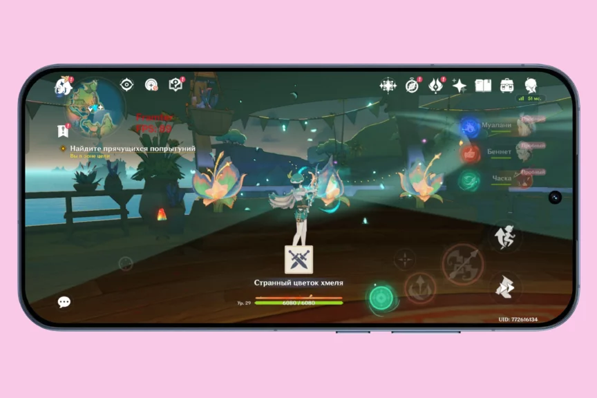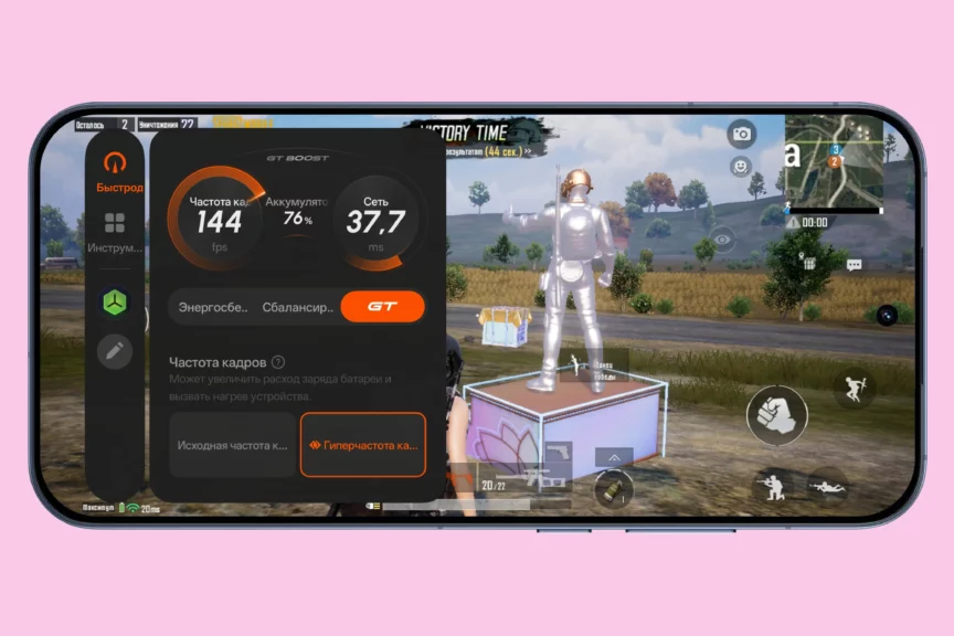 В играх, кроме процессора, в дело включается еще и фирменный чип Hyper Vision+. Именно он помогает поднять fps, даже если игра не поддерживает нативную высокую частоту. В Genshin Impact я играл при 90 fps, а из Call Of Duty Mobile и PUBG Mobile удалось выжать 144 fps!