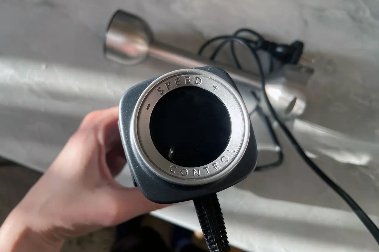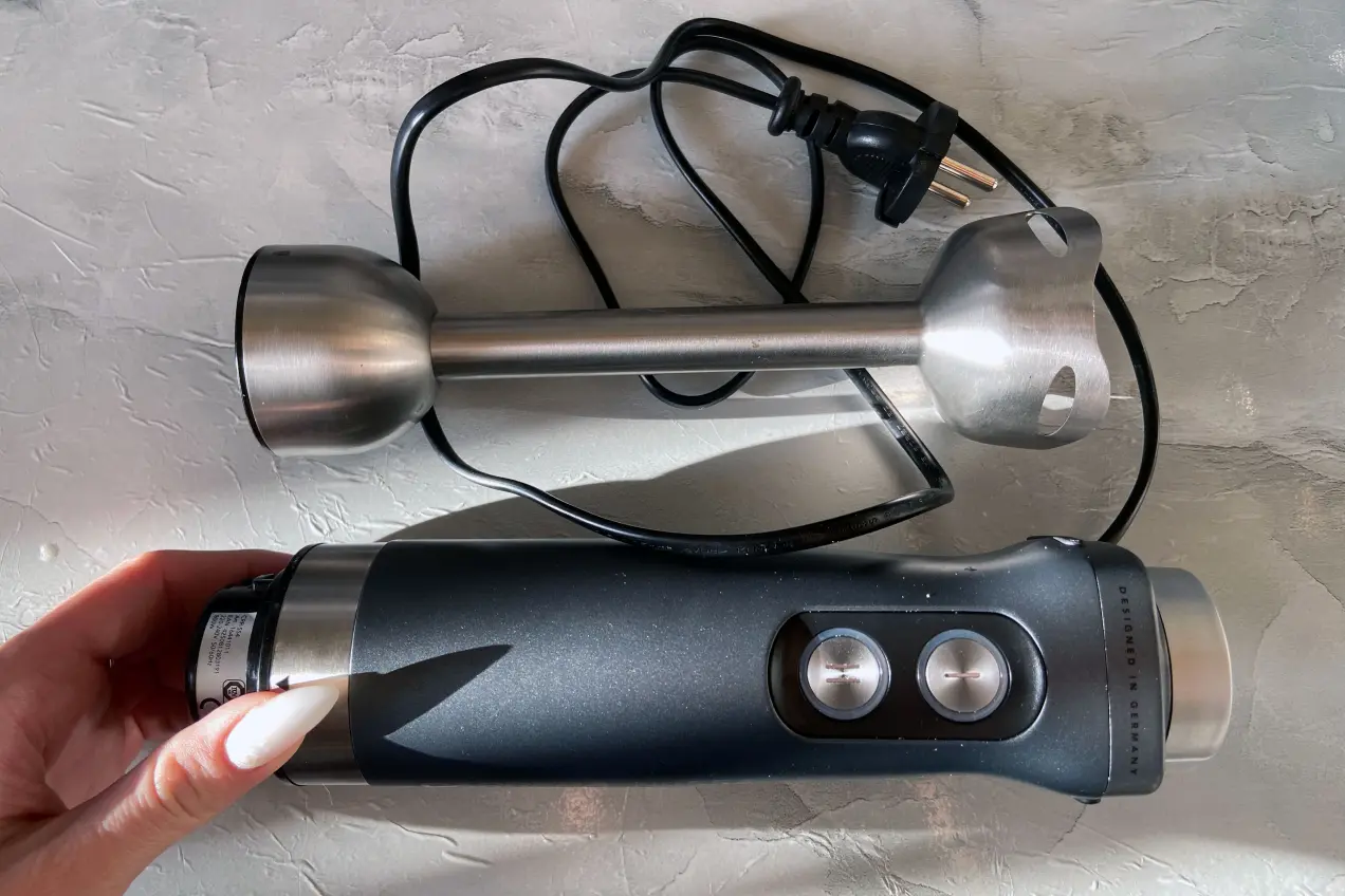 Держать блендер в руке удобно, несмотря на то что он довольно увесистый (1,4 кг). Зато сразу чувствуется надежность.