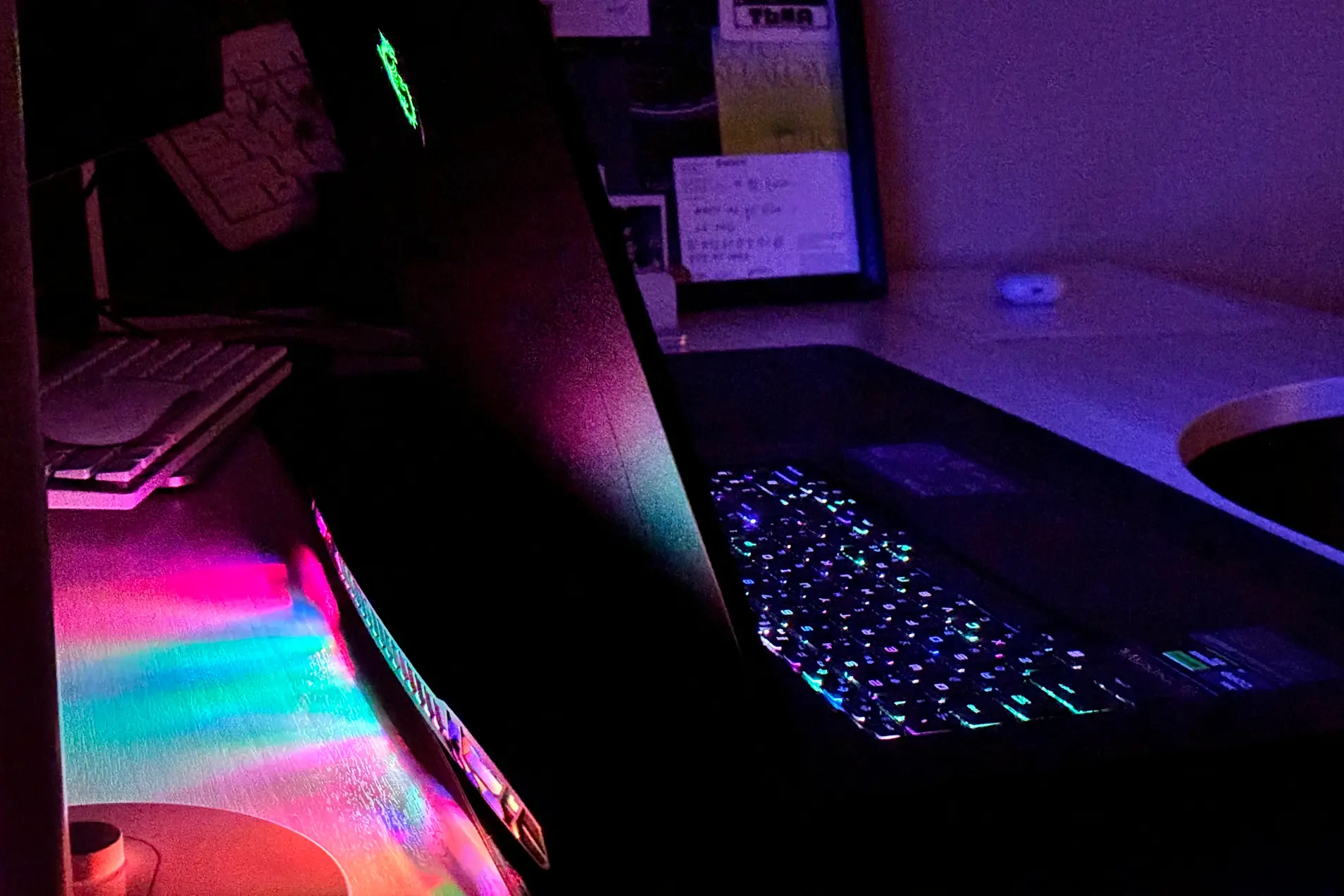 Потом включается разноцветная подсветка. Кажется, светится вообще все: клавиатура, логотип MSI, отверстия для воздуха. Вот именно тогда MSI Titan становится похож на игровое устройство.