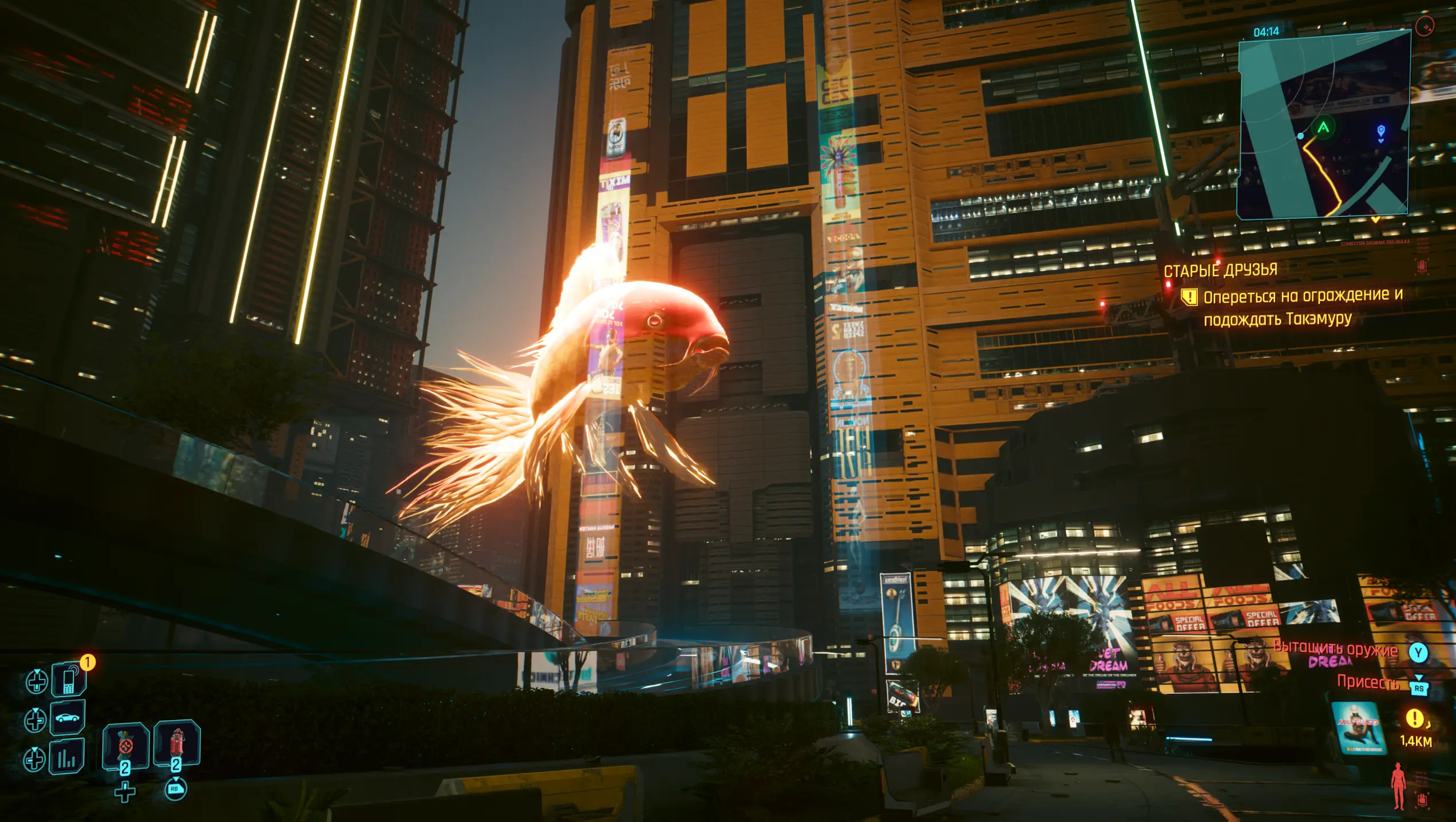 Очевидный бенчмарк любого устройства за последние несколько лет. Ролевая игра от CD Projekt Red очень красивая, но я даже не знал насколько. На ультранастройках игра заиграла совершенно новыми красками. Я установил нативное разрешение в 4K, выбрал режим DLSS на качество и максимальную трассировку лучей. И, кажется, наконец понял, каким задумывали мир «Киберпанка» его создатели.