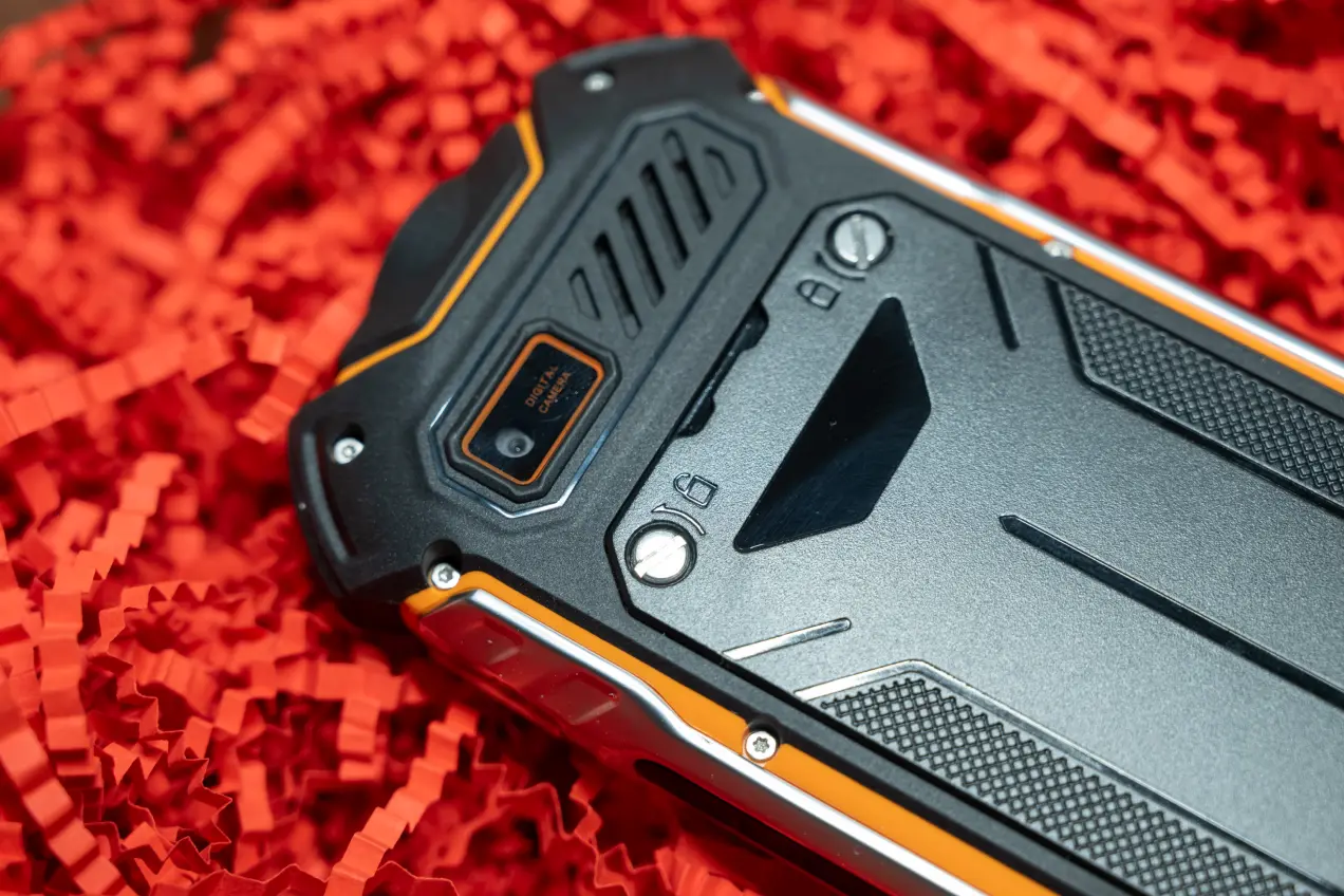 Добавим сюда обрезиненный корпус с алюминиевыми накладками по краям, крепящуюся на винтах заднюю крышку с резиновым уплотнением, резиновую заглушку для разъемов. В общем, устройство отлично подойдет для тех случаев, когда церемониться с ним никто не собирается. Это телефон для дедушки на даче, для рыбаков и охотников, туристов — для тех, кто работает в сложных условиях.