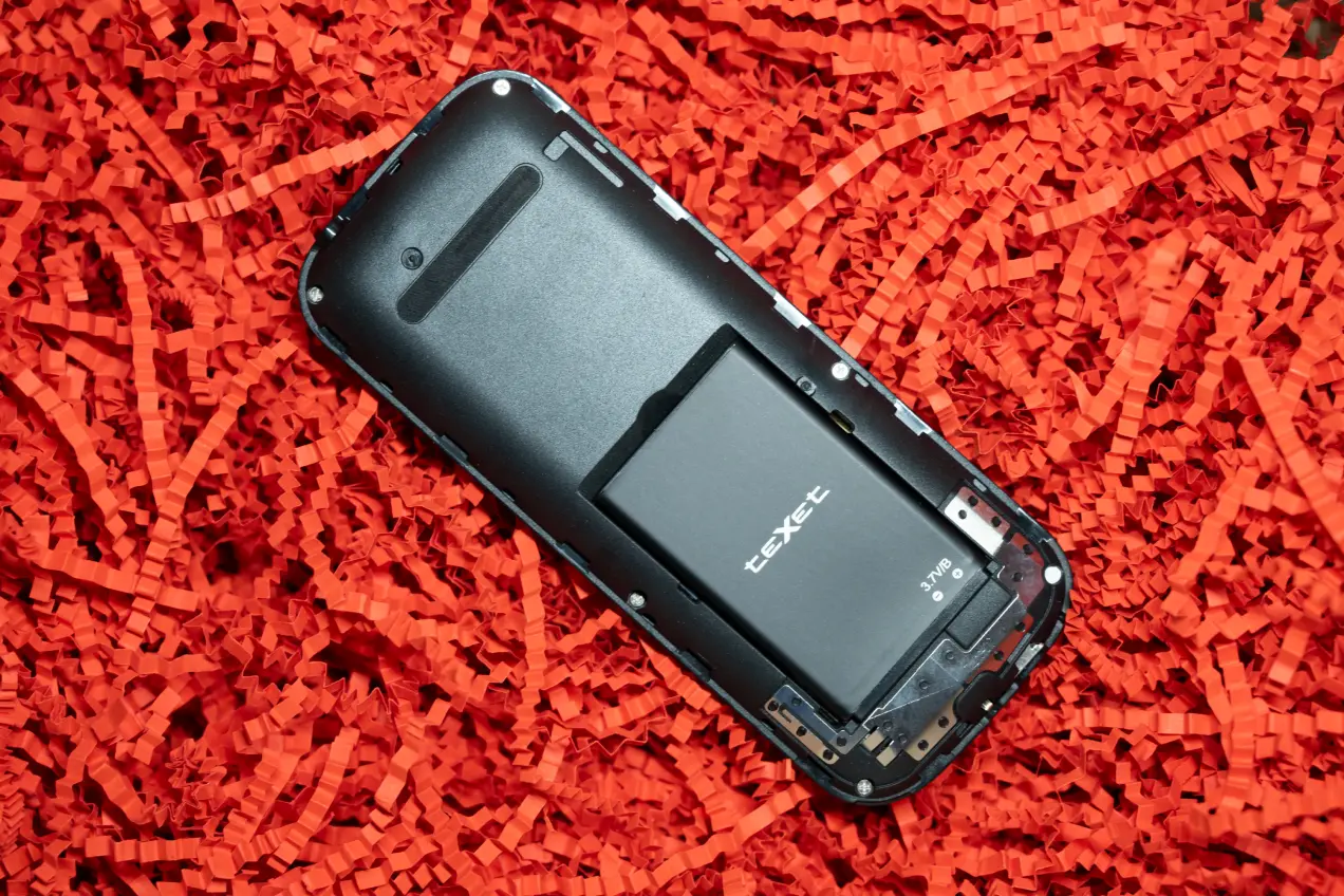 На третьем приземлении Texet TM-216 уже получил первое, пусть и незначительное повреждение: у него вышла из паза панель клавиатуры. Для «ремонта» хватило простого нажатия — и все стало на места, кнопки работают как и прежде. А еще в результате падения телефон выключился.